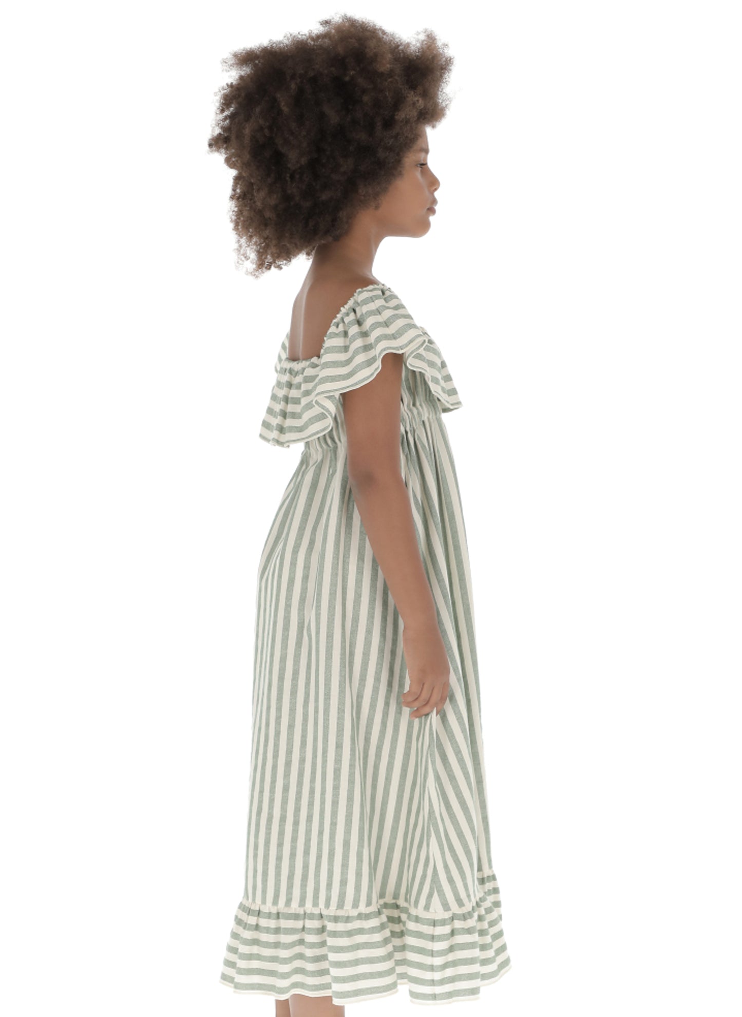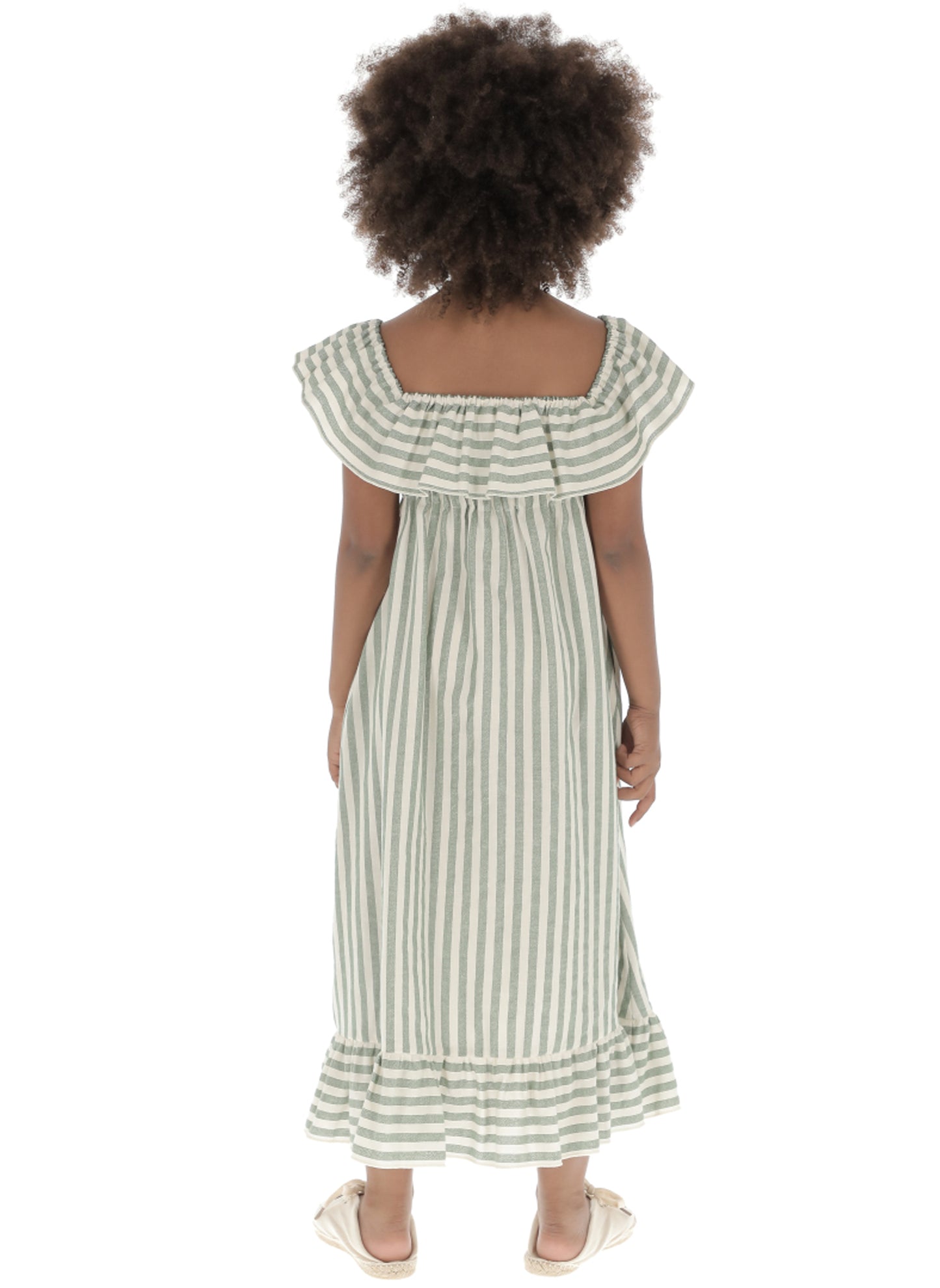 - Top ruffle gathered and elastic that allows several positions: word of honor, over the shoulders, below the shoulders, shoulder on - shoulder off.