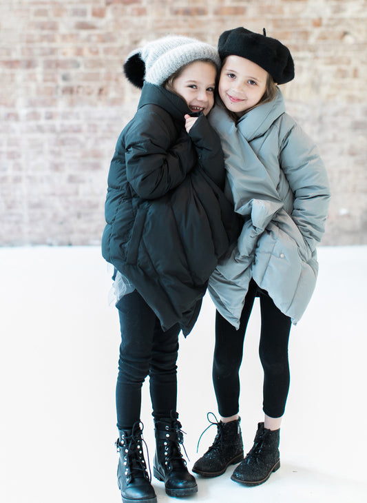 Vierra Rose London Wool Back Puffer in Black/Grey