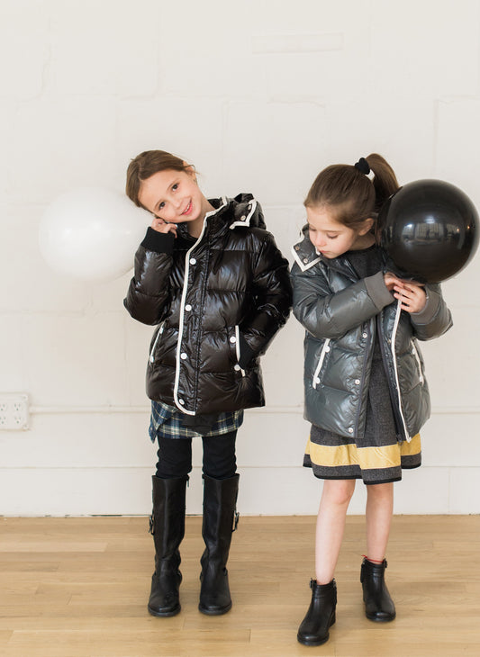 Vierra Rose Drew Contrast Sleeve Puffer in Black/Silver *Hello Alyss Exclusives*