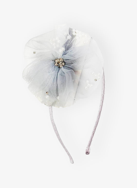 Bari Lynn Tulle Flower With Pearls Headband in Silver