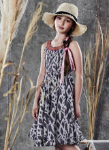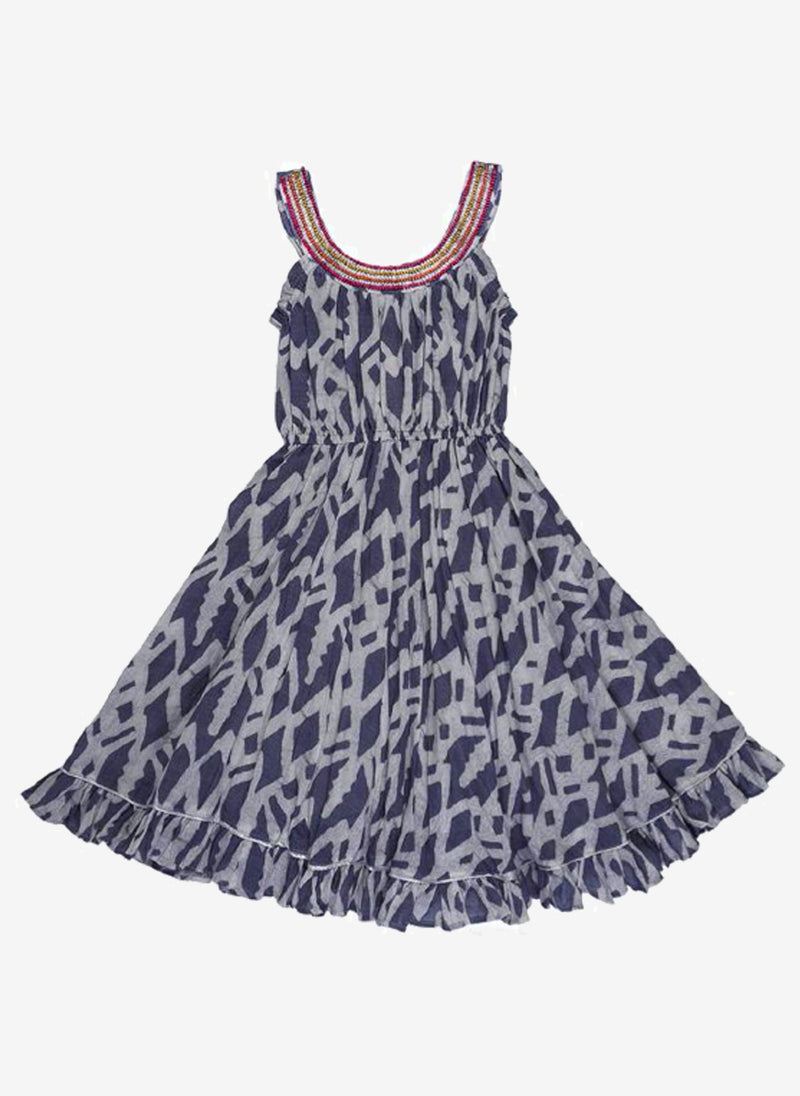 Ujala Cotton Head Beaded Necklace Dress in Grey Batik