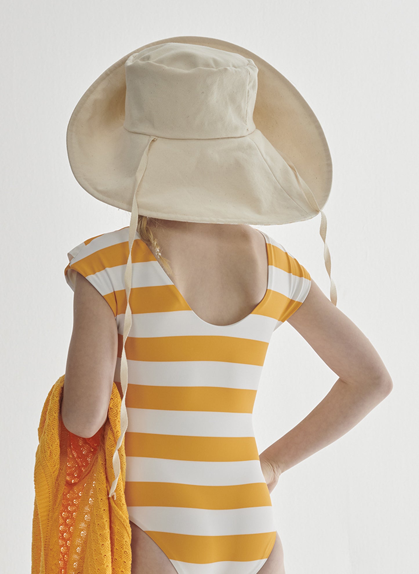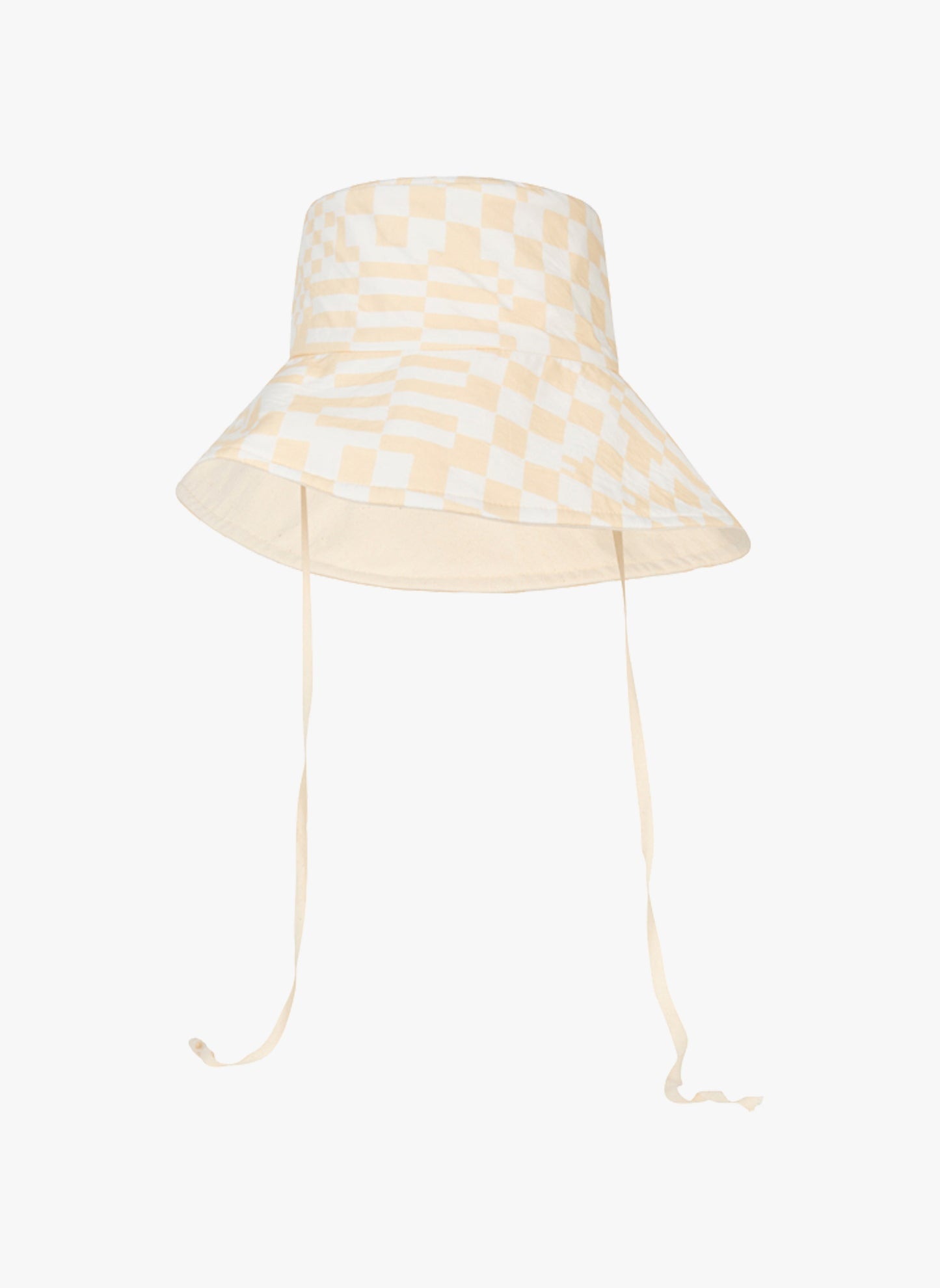 - Reversible cotton canvas hat in plain cream and bold cream print. Oversize brim with ribbon knot.