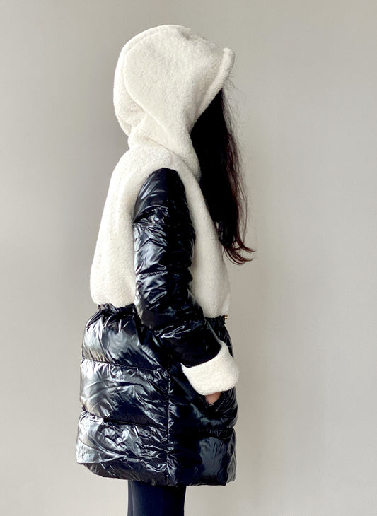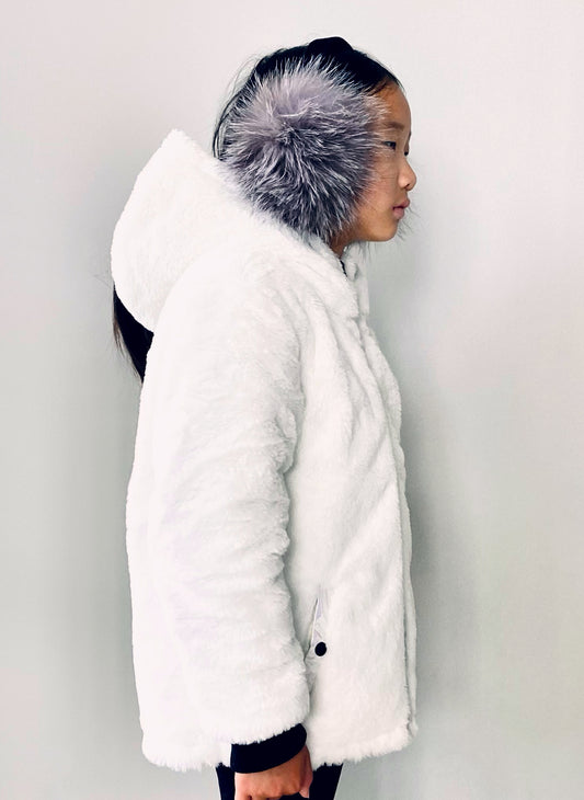 Vierra Rose Jusuf Reversible Jacket in White Fur/ Shiny Black
