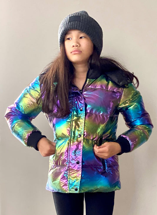 Vierra Rose Sia Iridescent combo Puffer in Pearl Iridescent