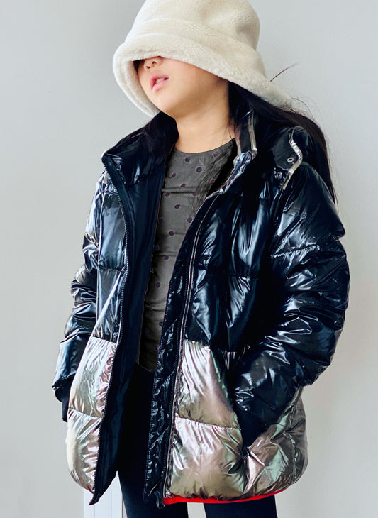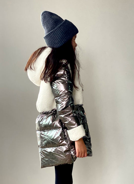 Vierra Rose Sia Iridescent combo Puffer in Dark Metallic Grey