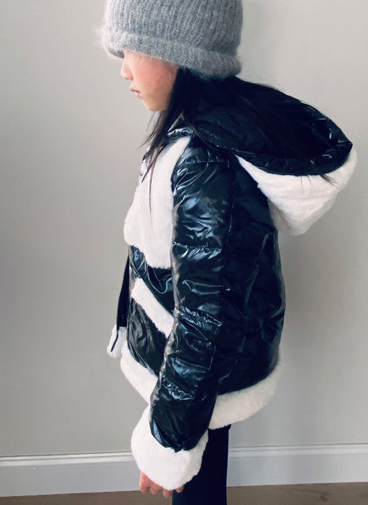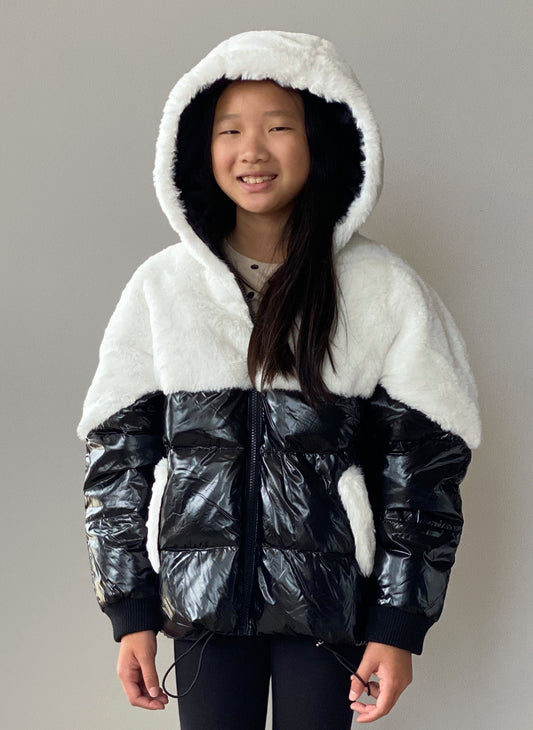 Vierra Rose Galya Faux Fur Combo Puffer in Black and White