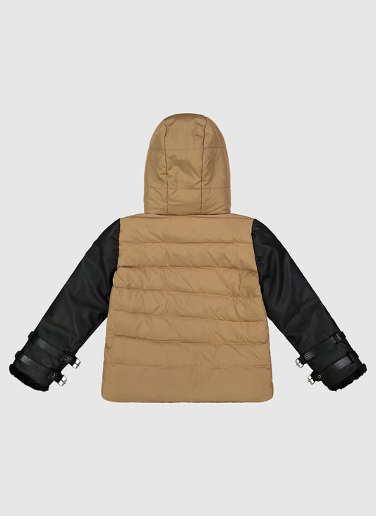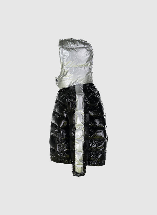 Vierra Rose Drew Contrast Sleeve Puffer in Black/Silver *Hello Alyss Exclusives*