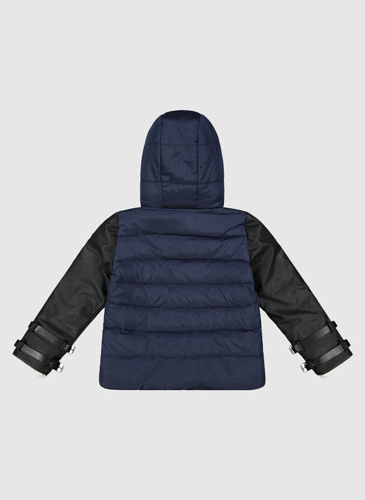 Vierra Rose Drew Contrast Sleeve Puffer in Navy
