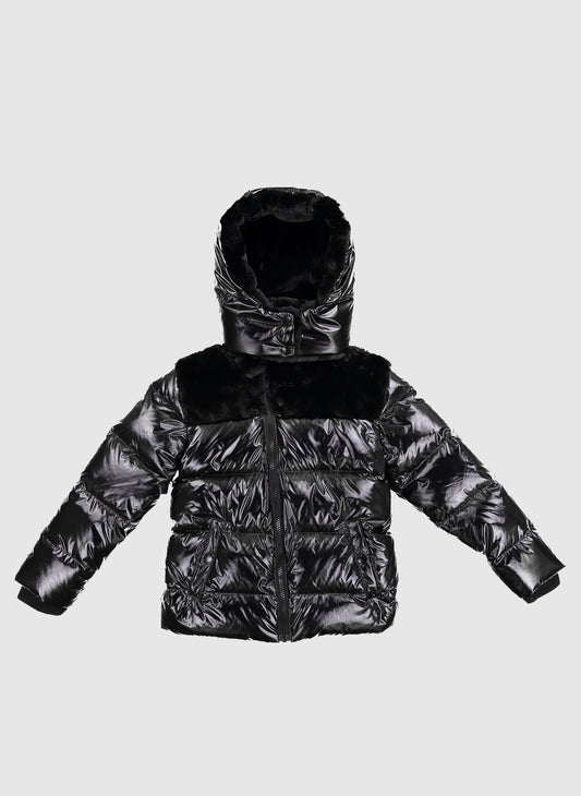 Vierra Rose Jules Shiny/Matte Combo Puffer in Black