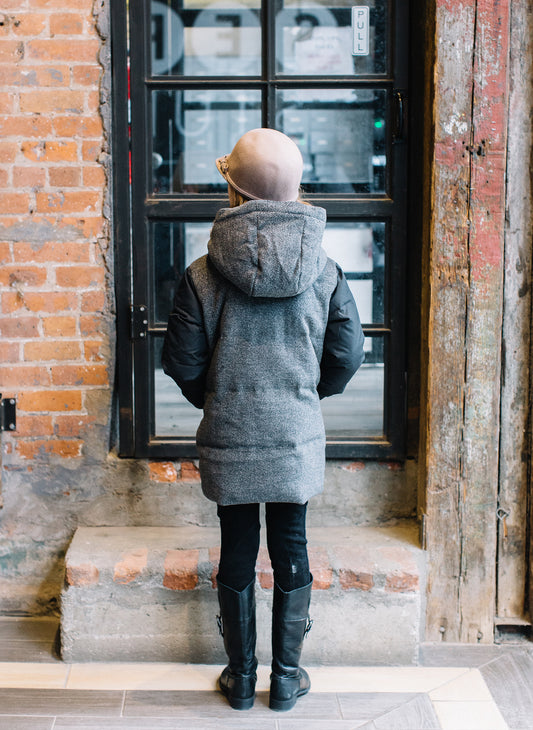 Vierra Rose London Wool Back Puffer in Black/Grey