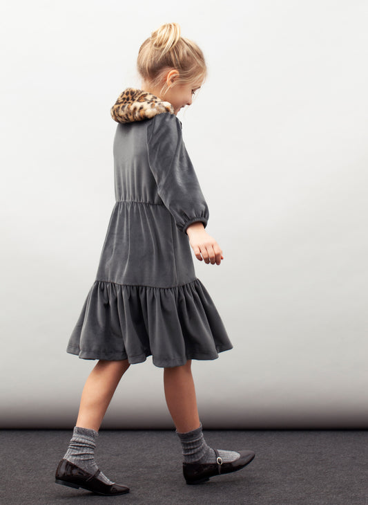 Vierra Rose Boa Faux Fur Top Jacket in Metallic Grey
