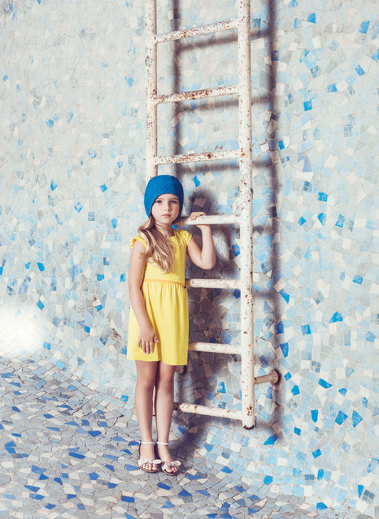 Carrement Beau Girls Dress with Bow on the Back in Yellow