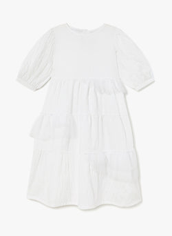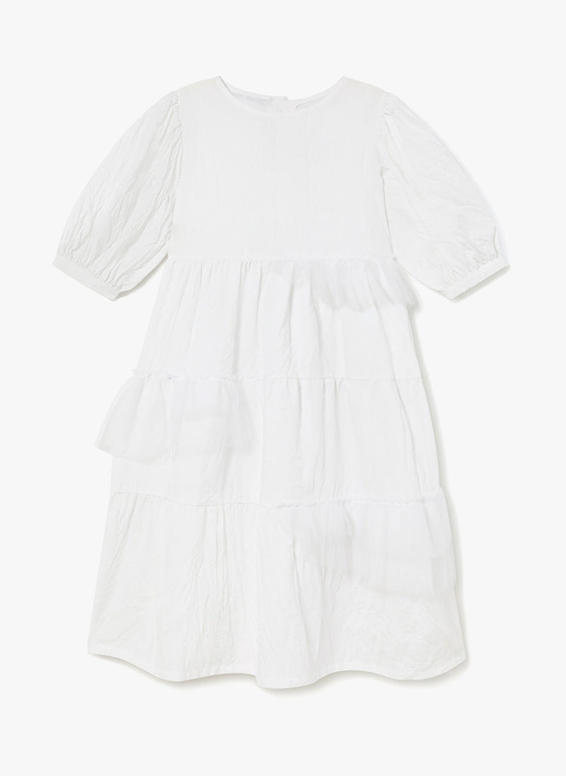 - Cotton polyester crushed cotton white dress
