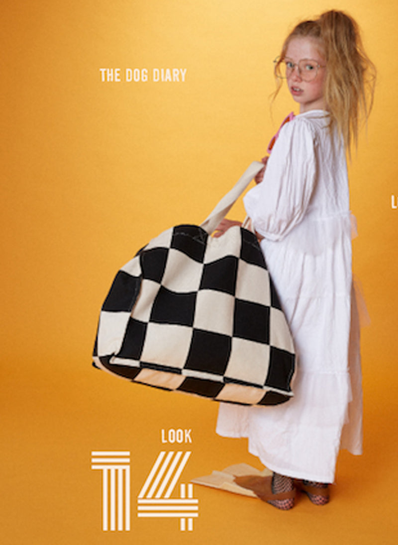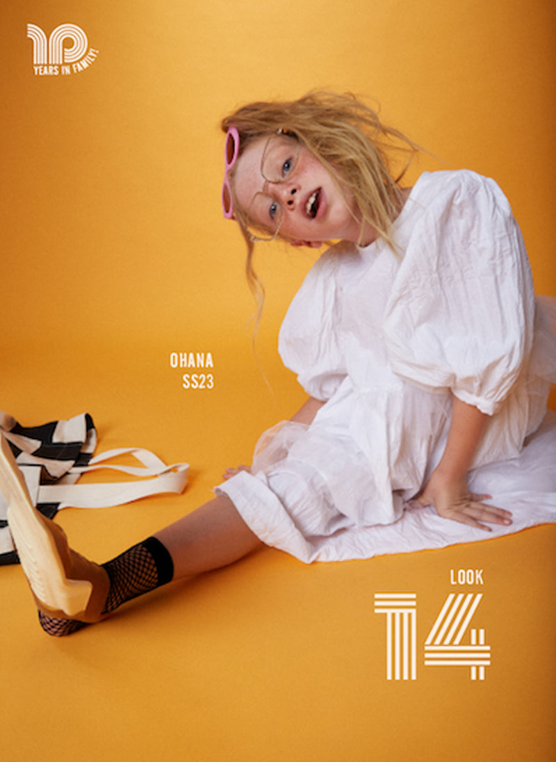 - Back opening with natural colored button closure