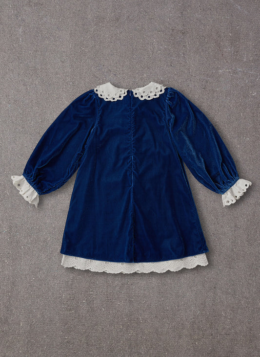 tocoto vintage Chambray and Lace Midi Girls Dress in Blue