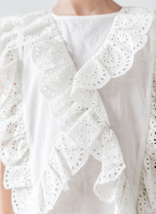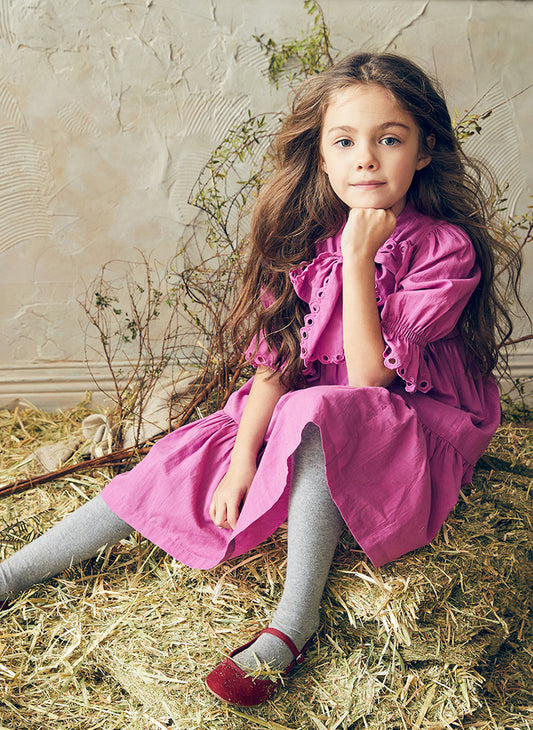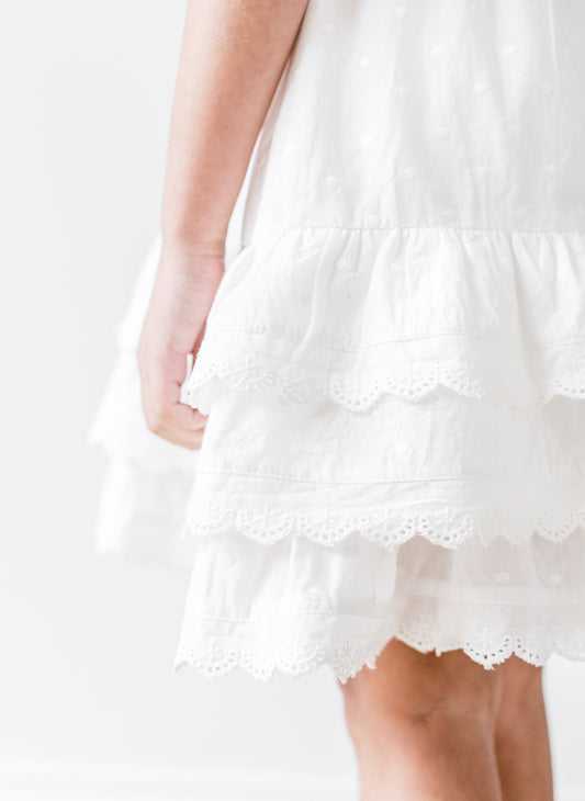 Petite Amalie Drop Waist Broderie Dress in Lemon
