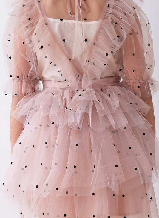 Petite Amalie Frilly Pleated Tulle Blouse and Skirt Set