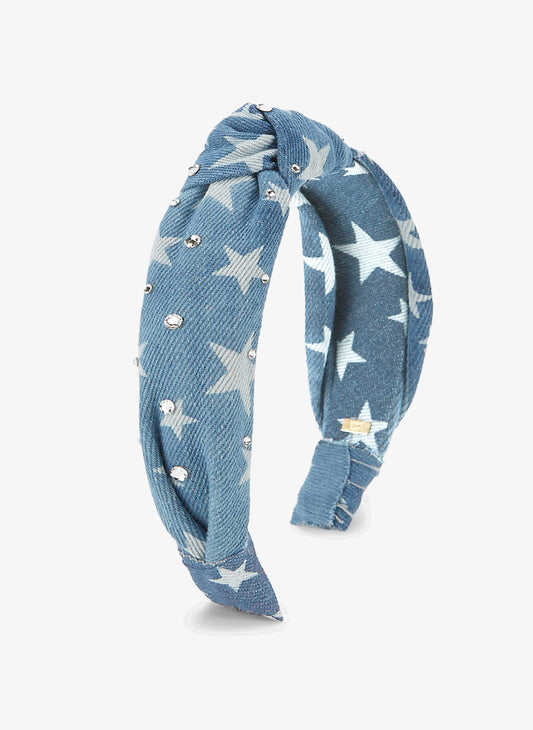 Bari Lynn Double Confetti Star Thin Headband in Silver