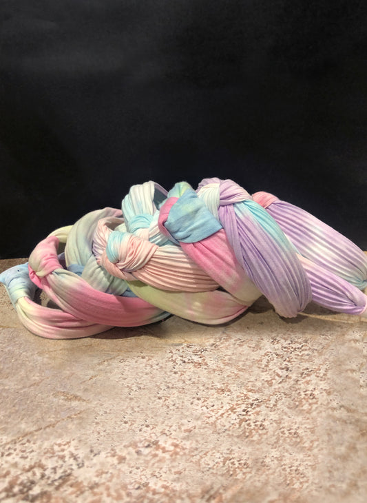 Bari Lynn Tie Dye Pleated Knot Headband in Pastel