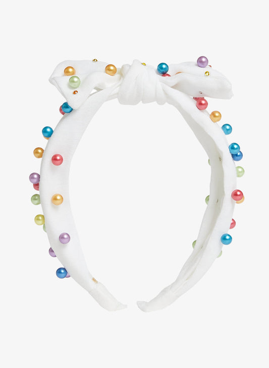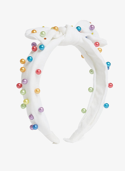 Bari Lynn Pompom Headband with Swarvoski Crystals - Ivory