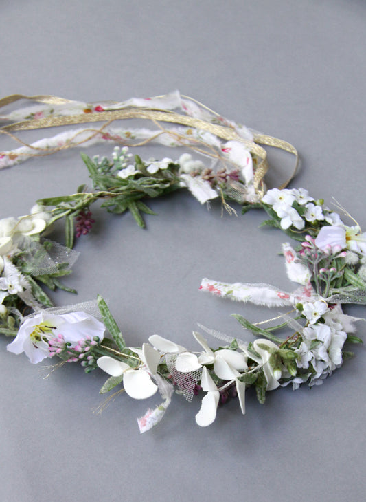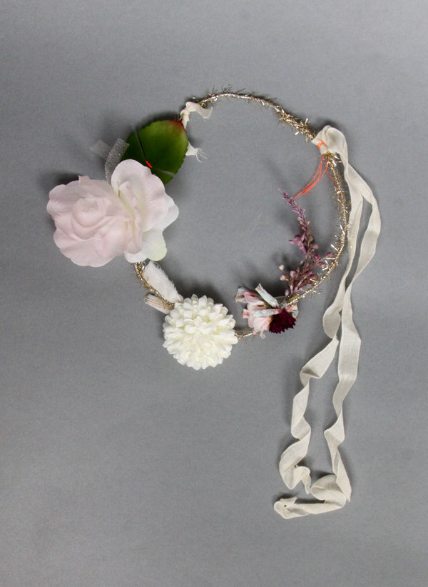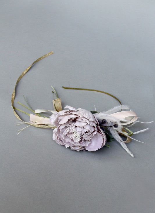 Bari Lynn Tulle Flower With Pearls Headband in Silver