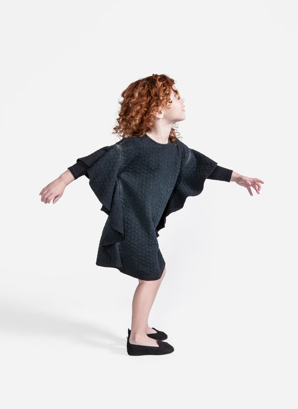 OMAMImini Quilted terry cape sleeve dress in Vintage Black