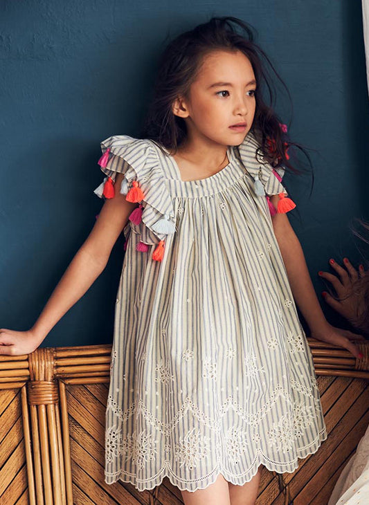 Nellystella Chloe Dress in Cotton Stripe Blue & Ecru