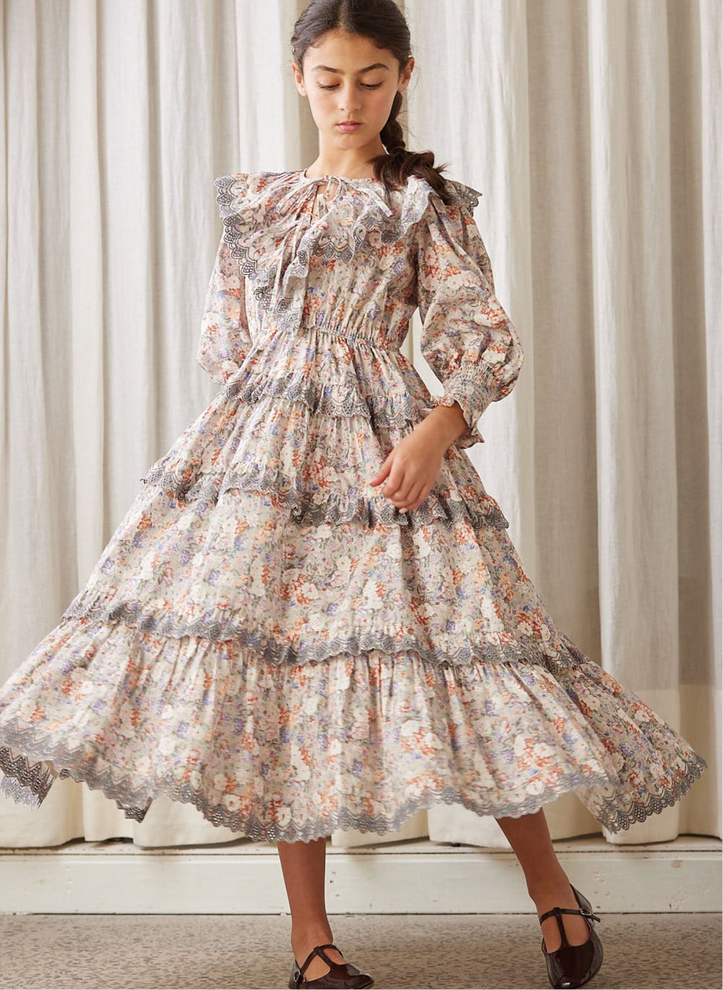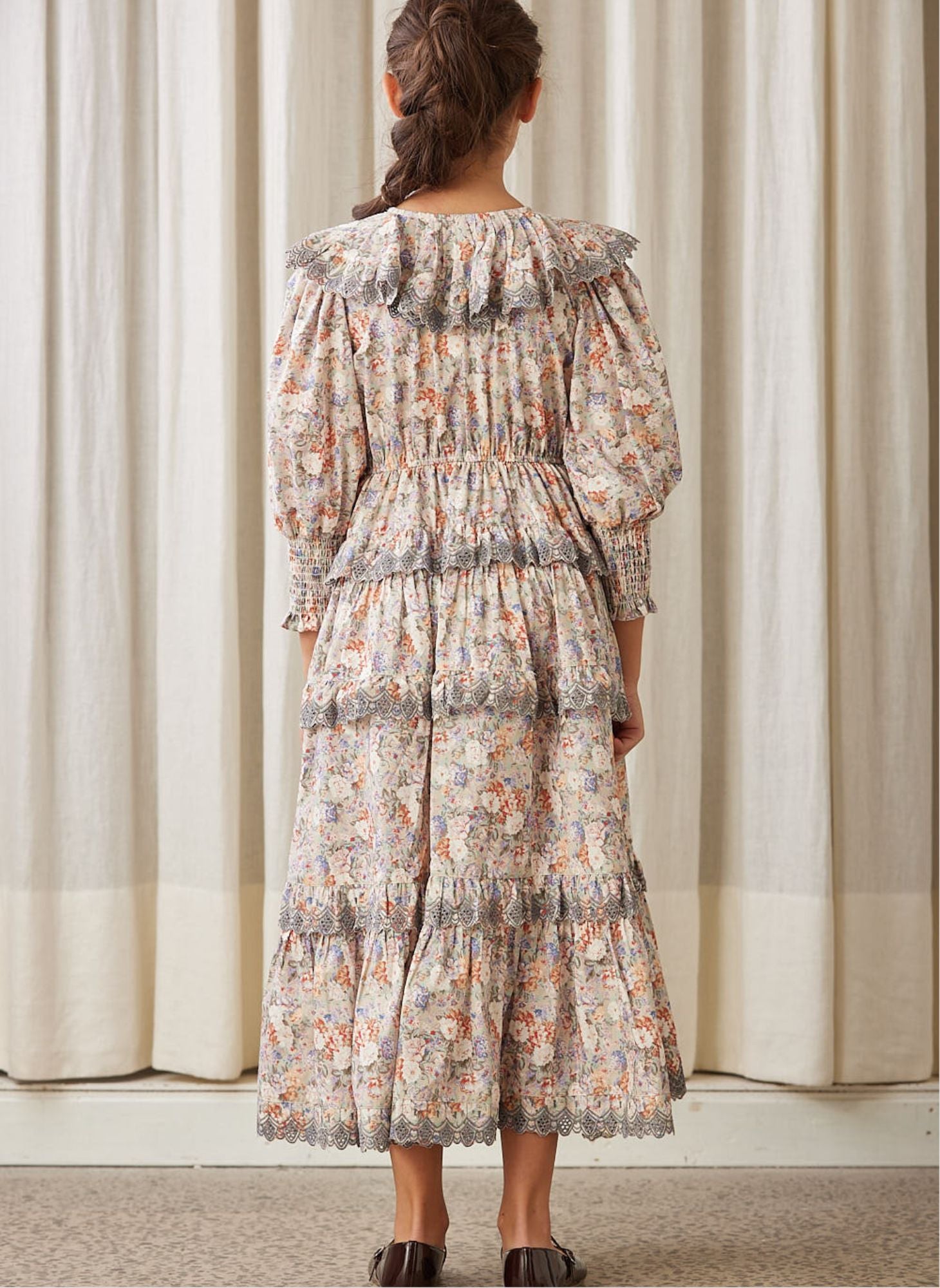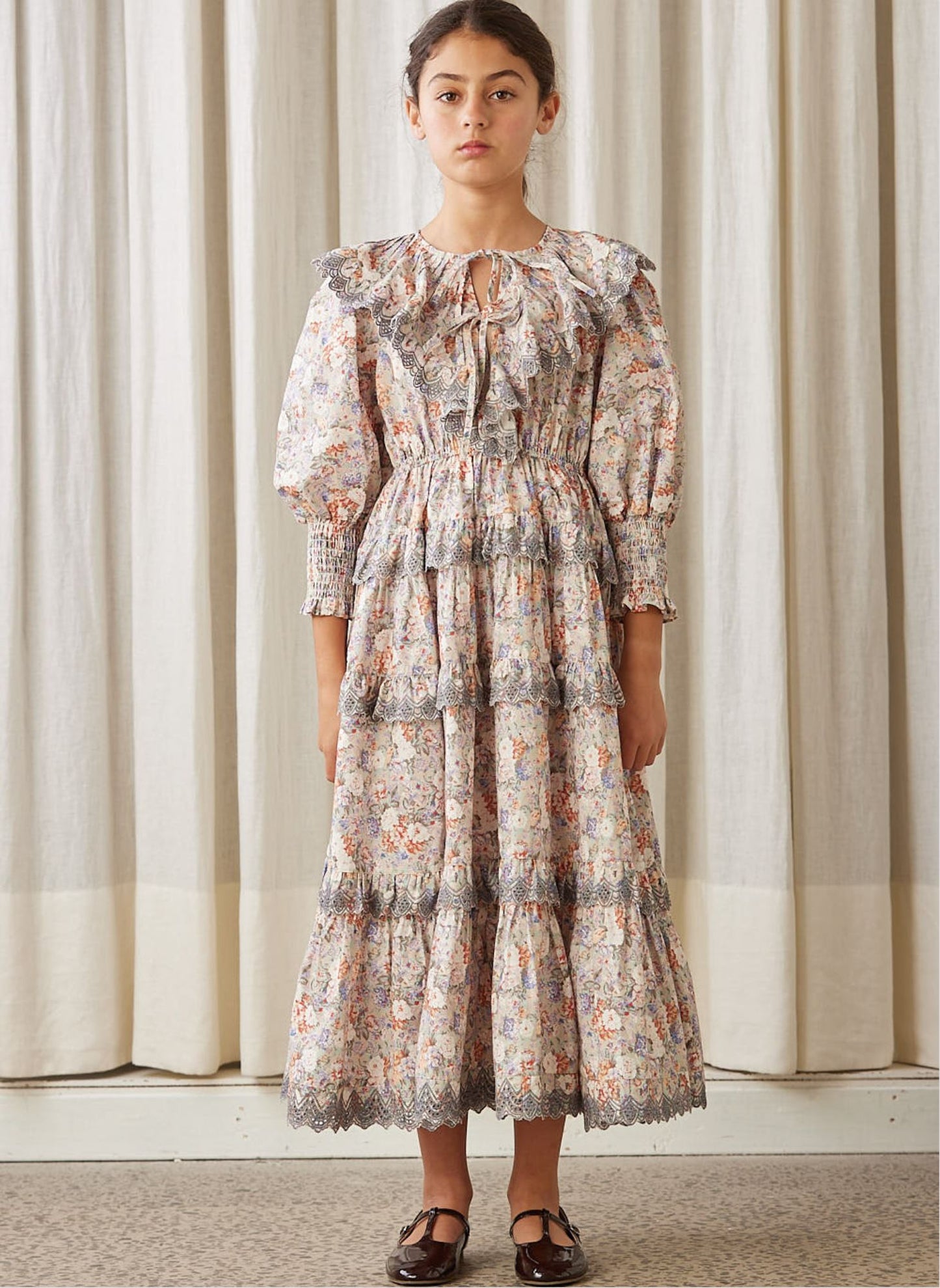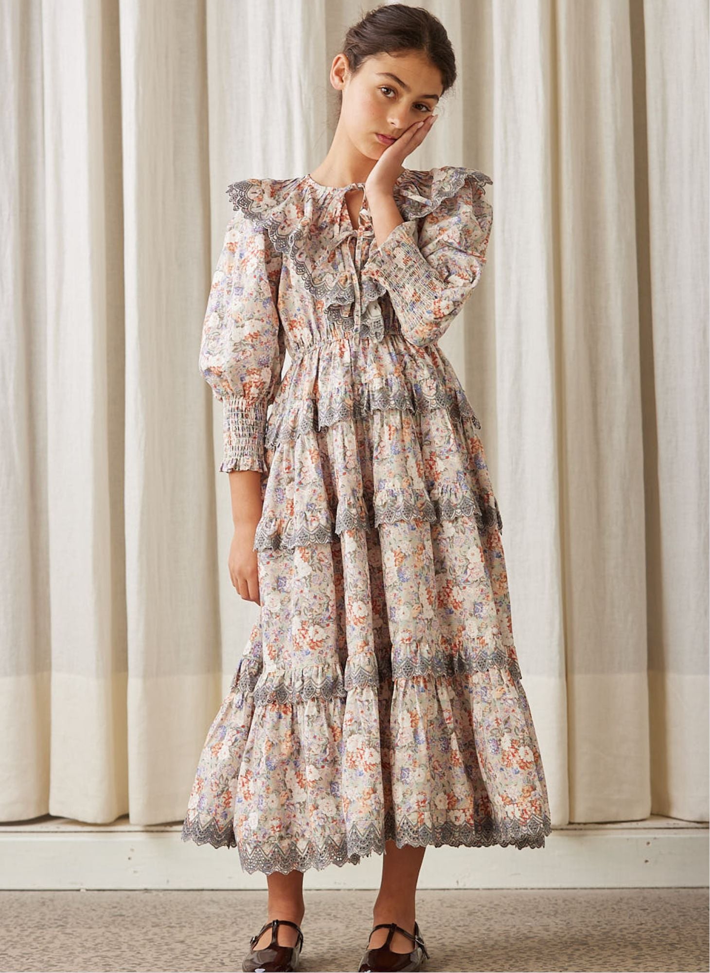 Introducing the Petite Amalie blue print long poplin dress, a maxi-length dress perfect for special occasions. This dress features a smocking sleeve detail, a tiered skirt, and a printed floral pattern that adds a touch of elegance. Perfect for a night out or a day of shopping.