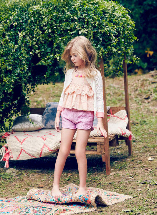 Tocoto Vintage Girls Lace Bottom Shorts in Pink