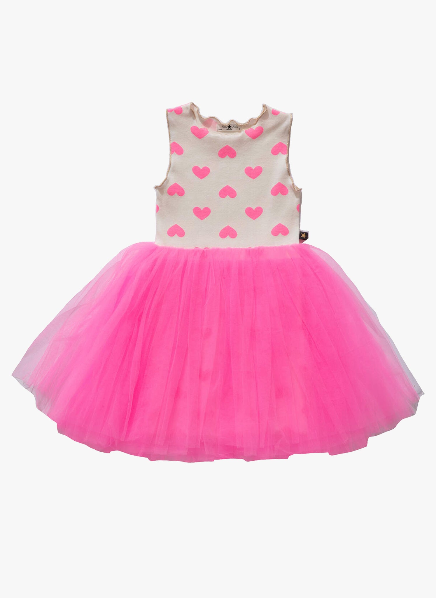 "Spread love and joy with our Vintage 4 Tutu Dress. This playful tulle dress is perfect for Valentine's Day, with its charming heart print. Show your unique style and celebrate the day of love with this quirky and fun outfit. Limited stocks only, get yours now!"
