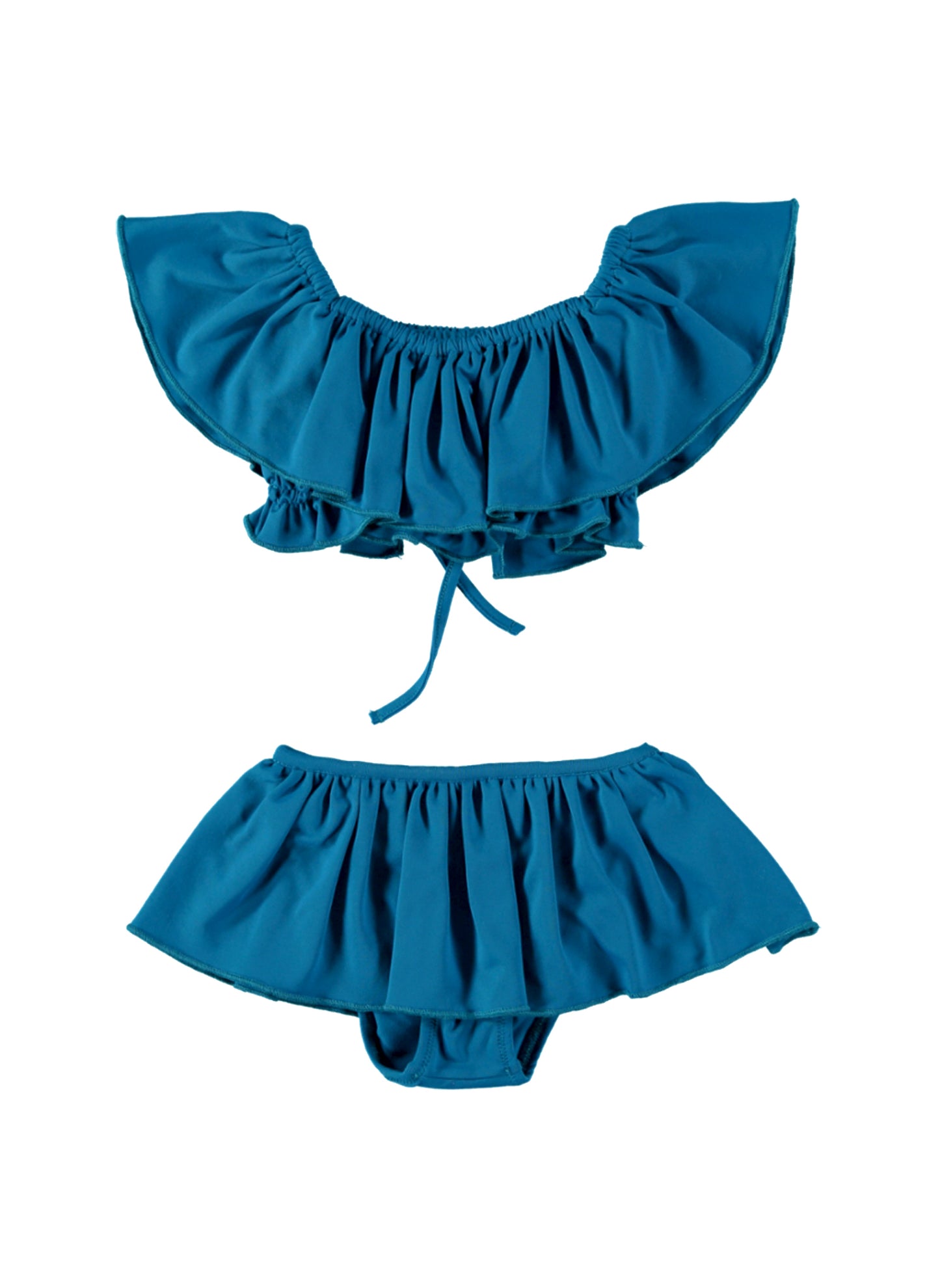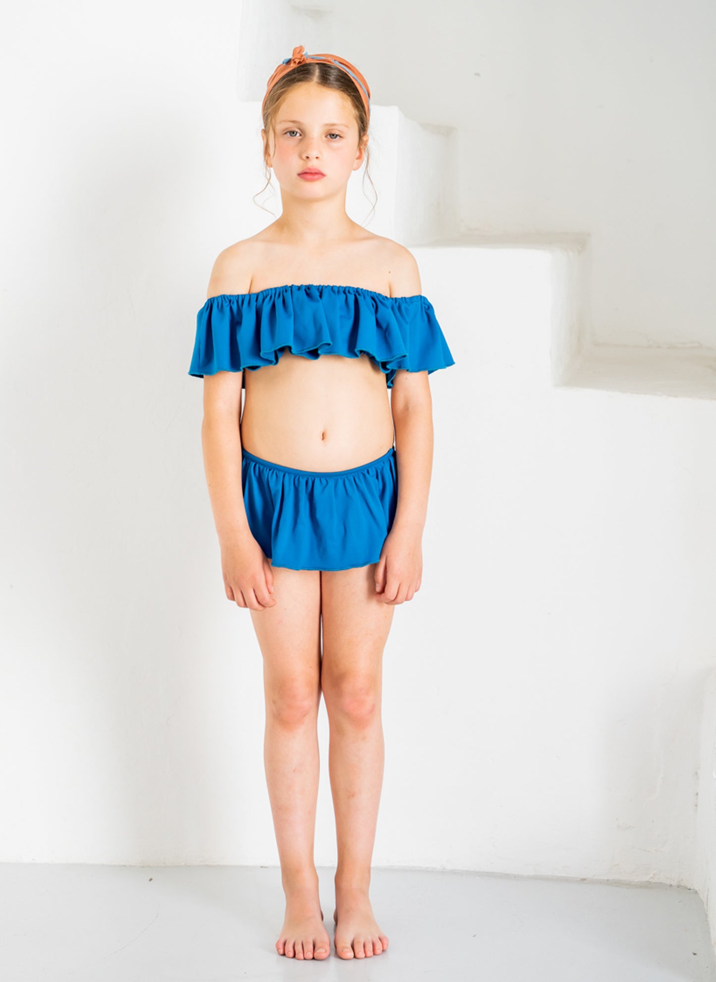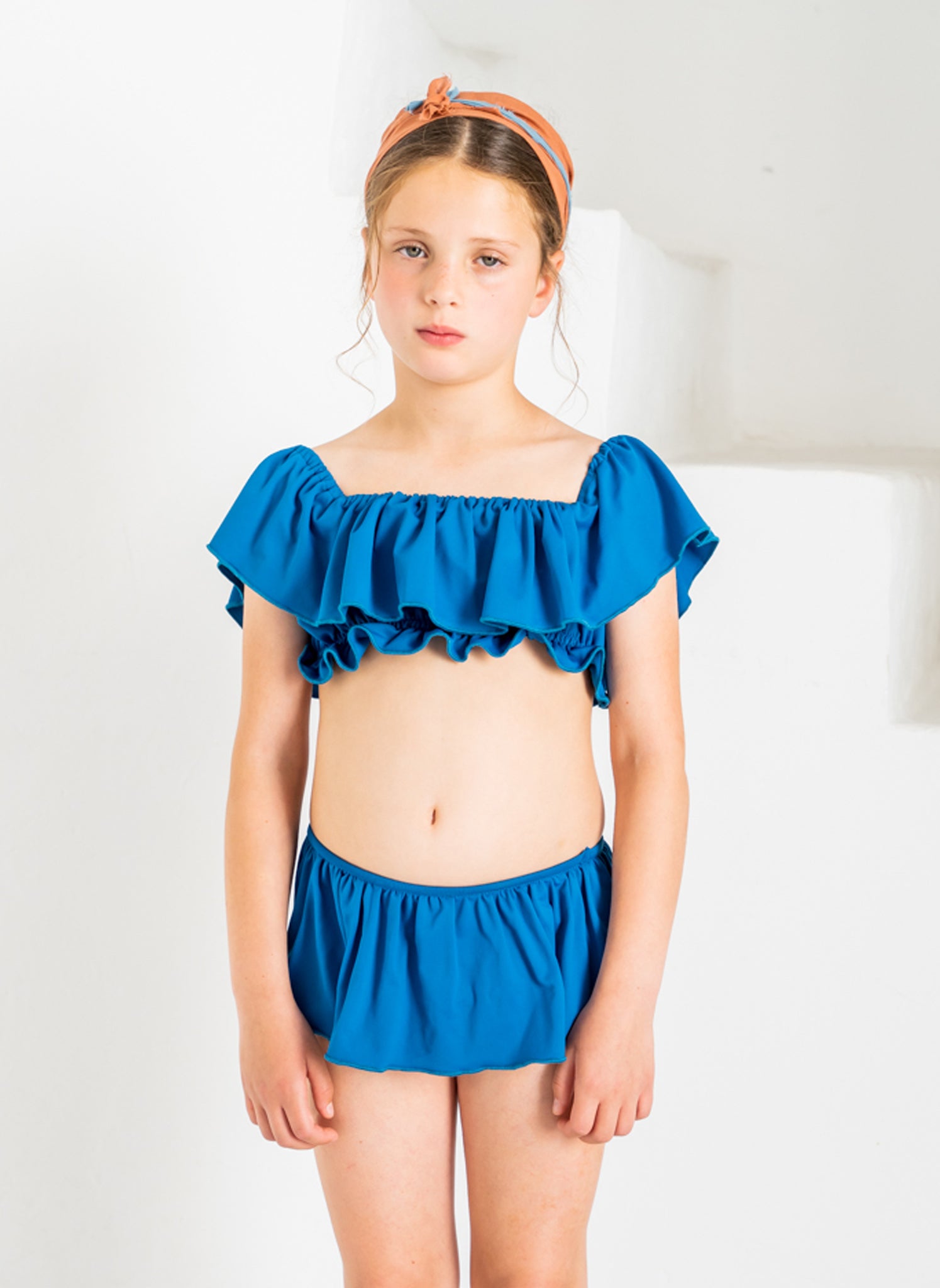 Top piece - two-layered short top with elastic band and ruffled ruffle. Various positions: