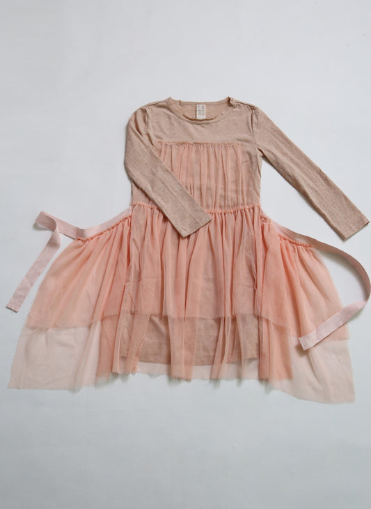 Tia Cibani Kids Classic Tulle Apron Dress in Guava