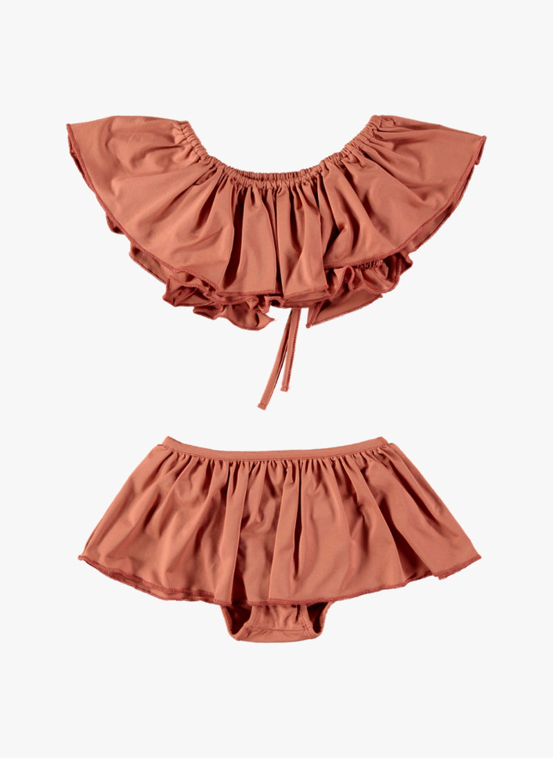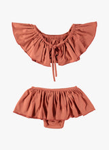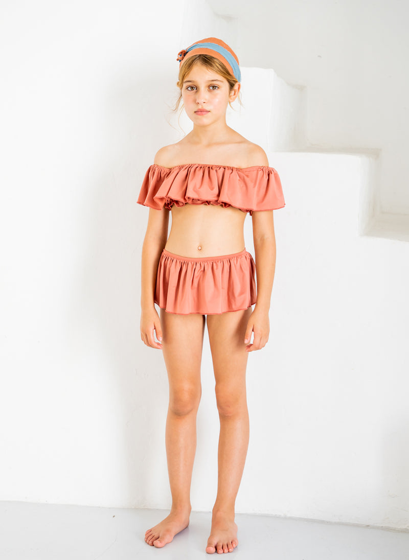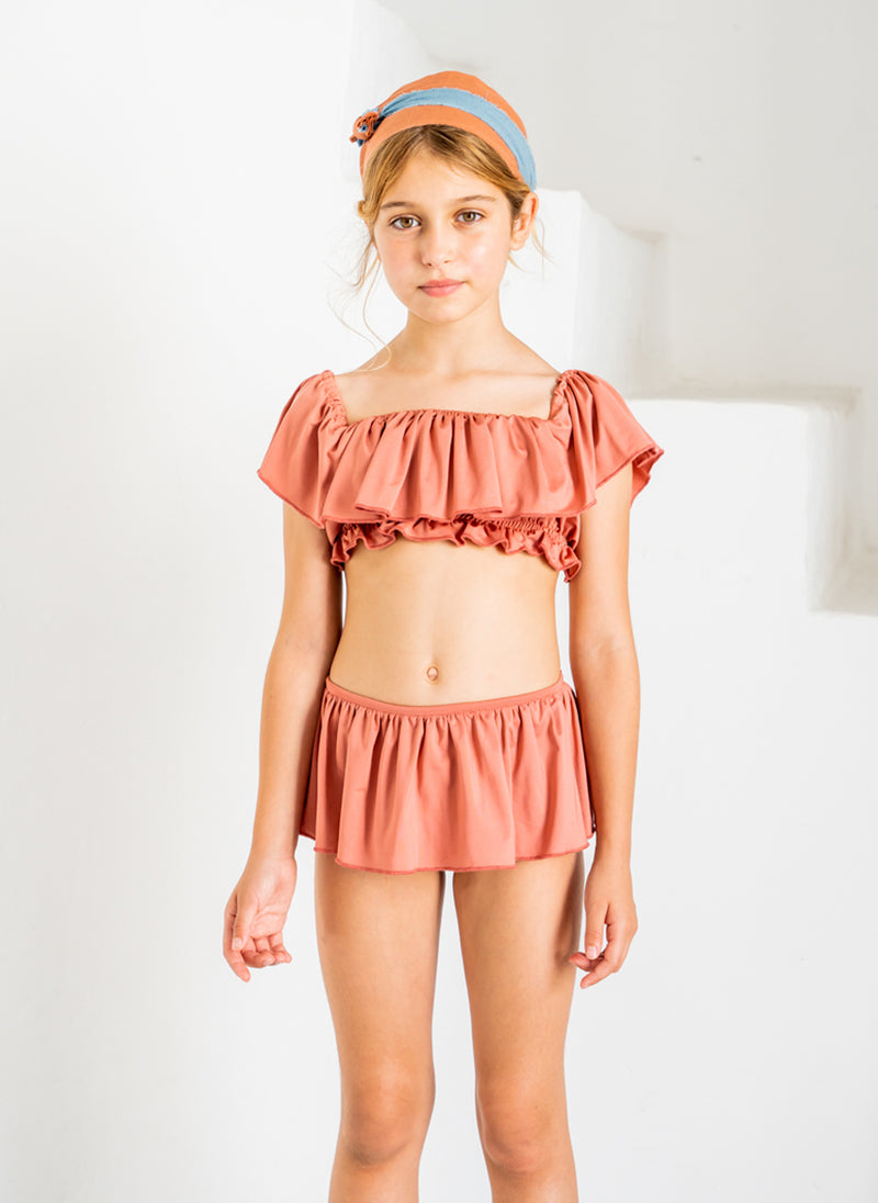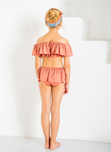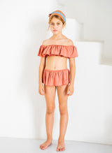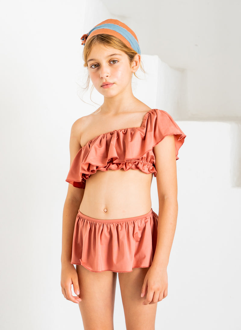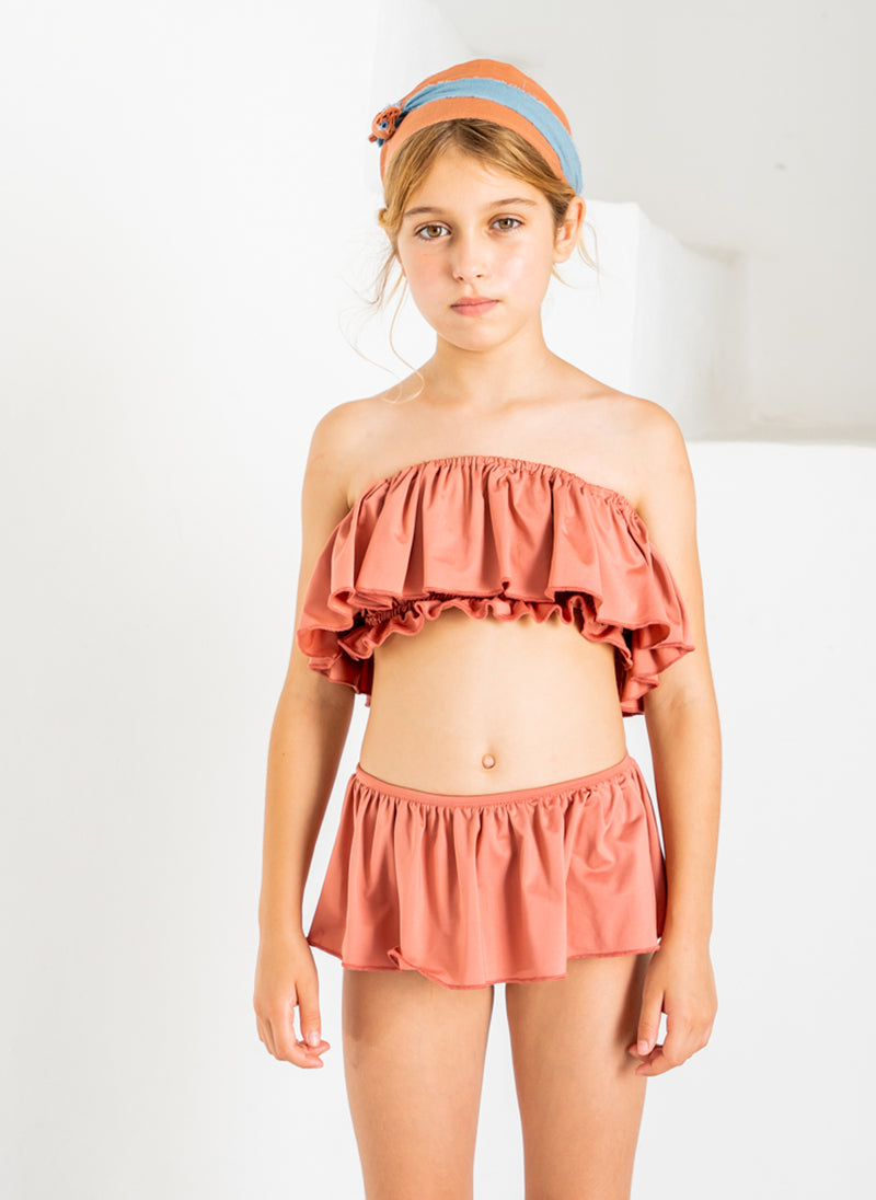 Top piece - two-layered short top with elastic band and ruffled ruffle. Various positions: