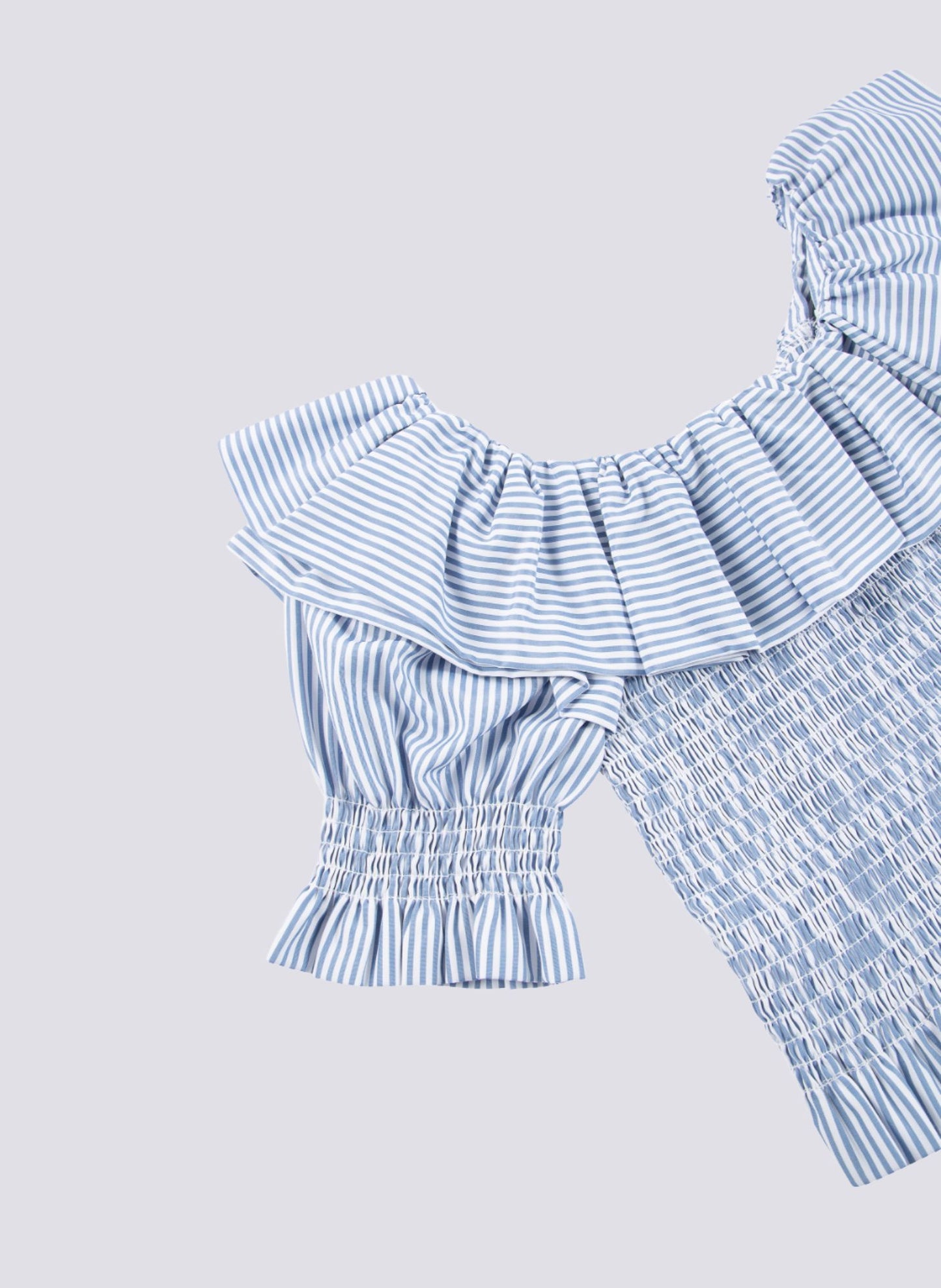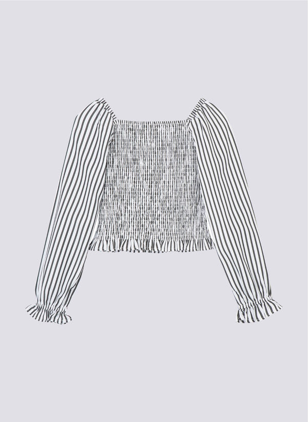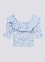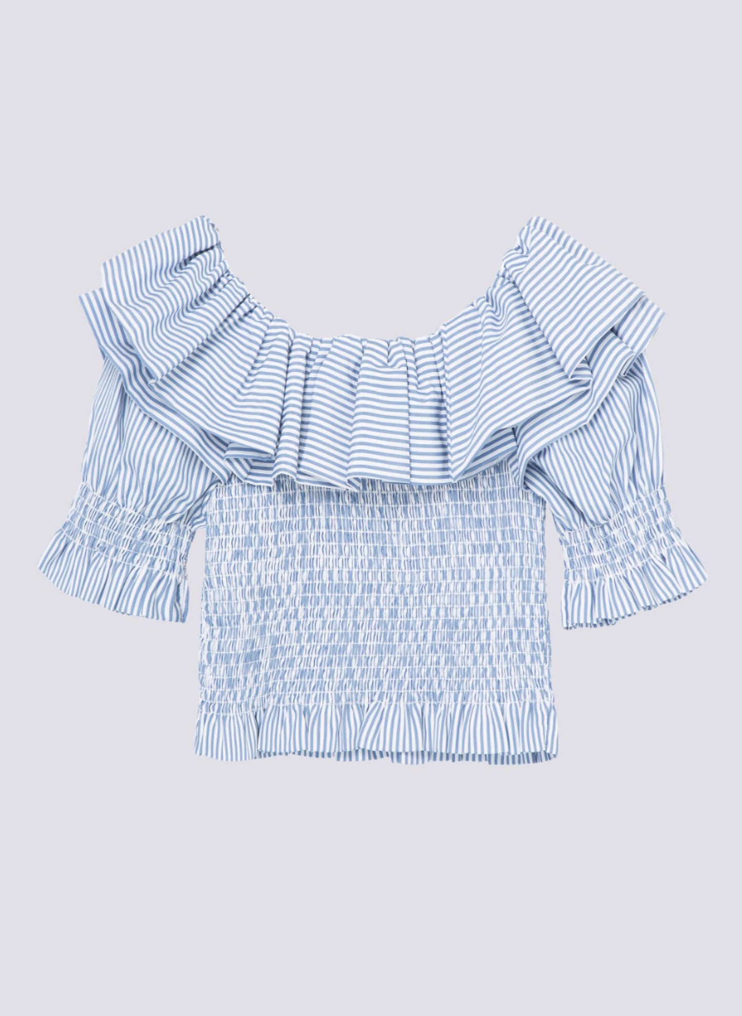 An all-over smocked blouse is topped off with a ruffled neckline for a look that's as cute as it is comfortable. Pair with some favorite denim for an easy, yet versatile look.
