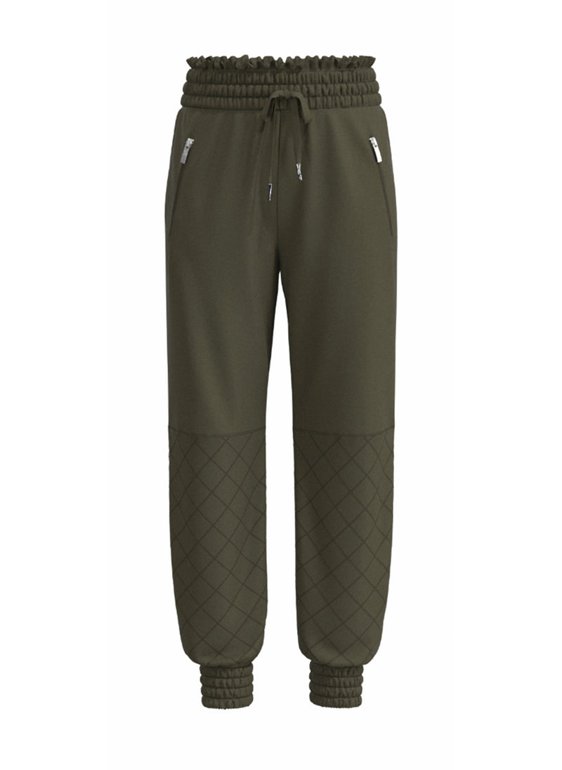These pull-on joggers are made of a cozy French Terry knit, and feature a smocked-waist, zipper pockets, and quilting detailing at the bottom legs. Pair with our matching Piped Sleeve Pullover to complete the look.