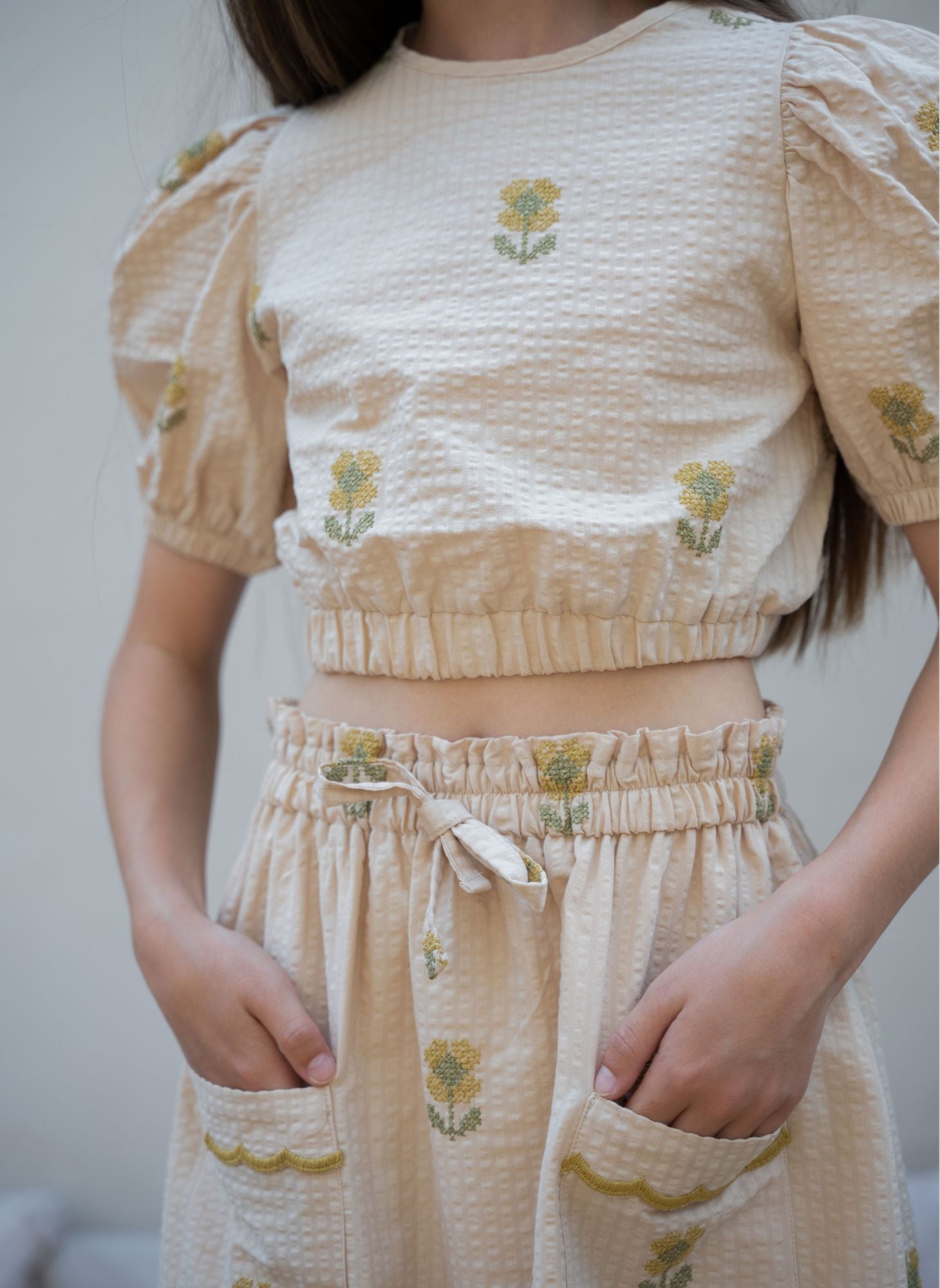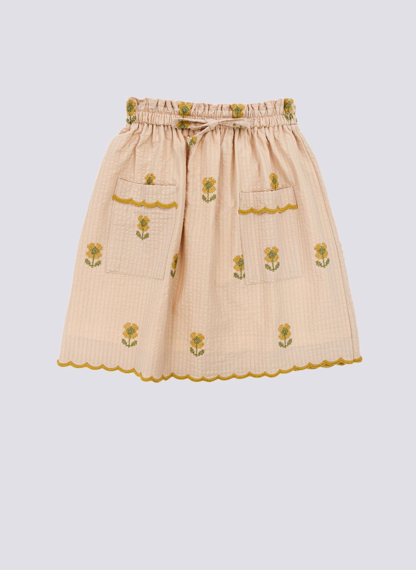 "Get ready to turn heads with our Kokori Elina Skirt! Made from high-quality cotton fabric, this skirt features beautiful scalloped edge embroidery for a unique and eye-catching look. The tie at the waist adds a playful touch, perfect for pairing with our Elina Skirt for a complete and stylish outfit. Add some flair to your wardrobe with this must-have piece!"