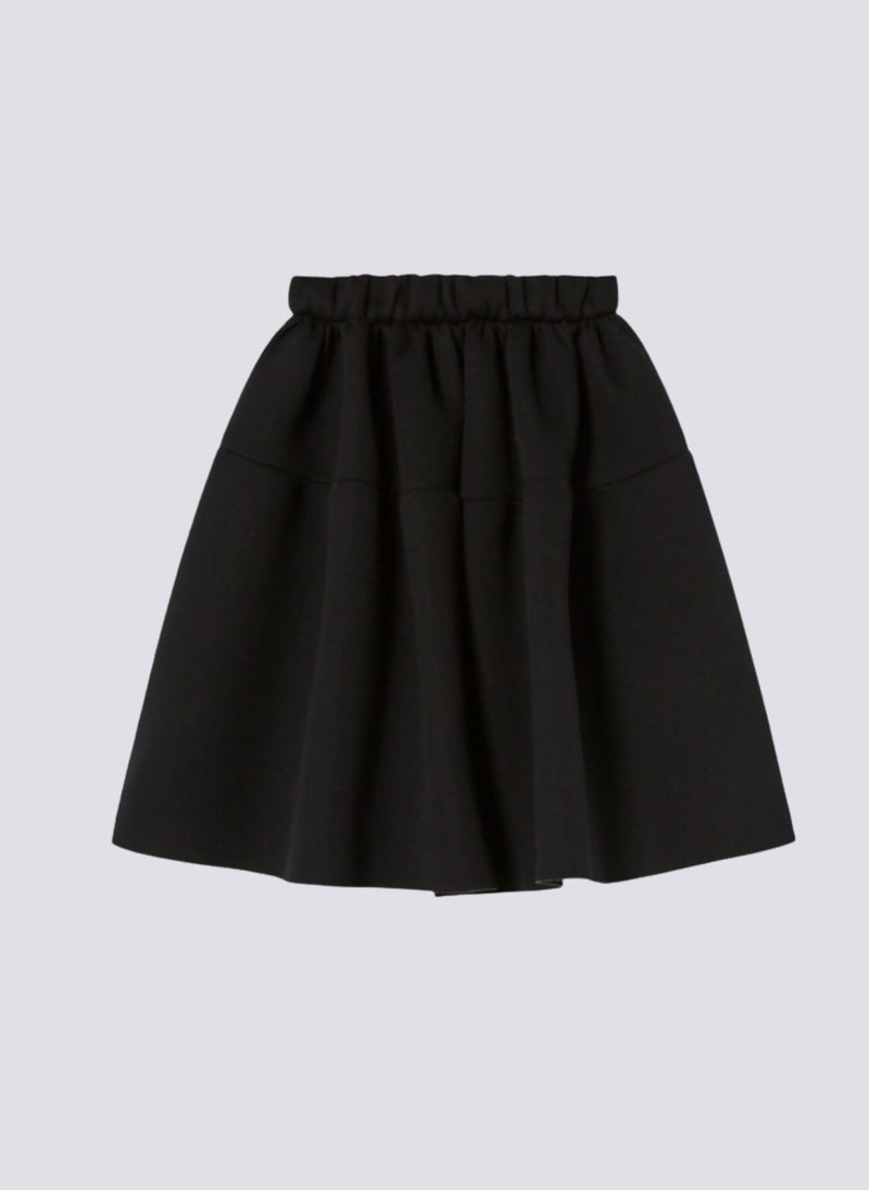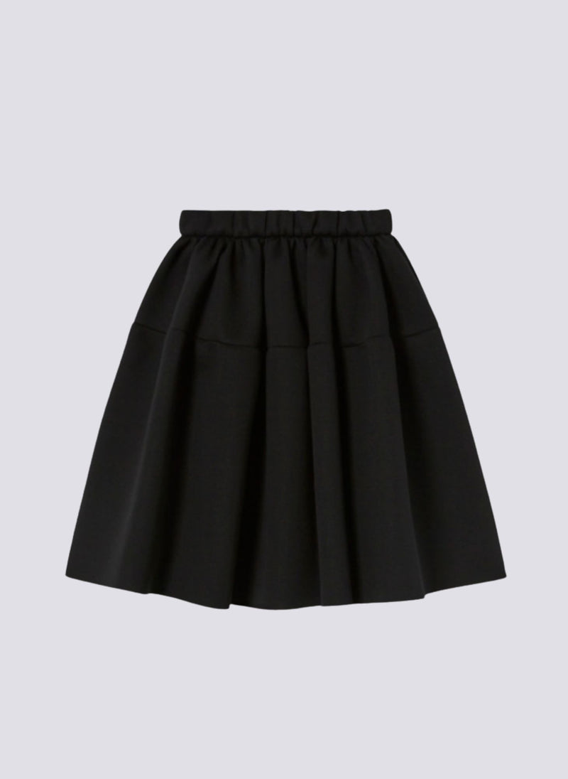 Divine black neoprene knee length skirt in two pieces for added volume. Interior pockets on side seams. Raw hem finishes.