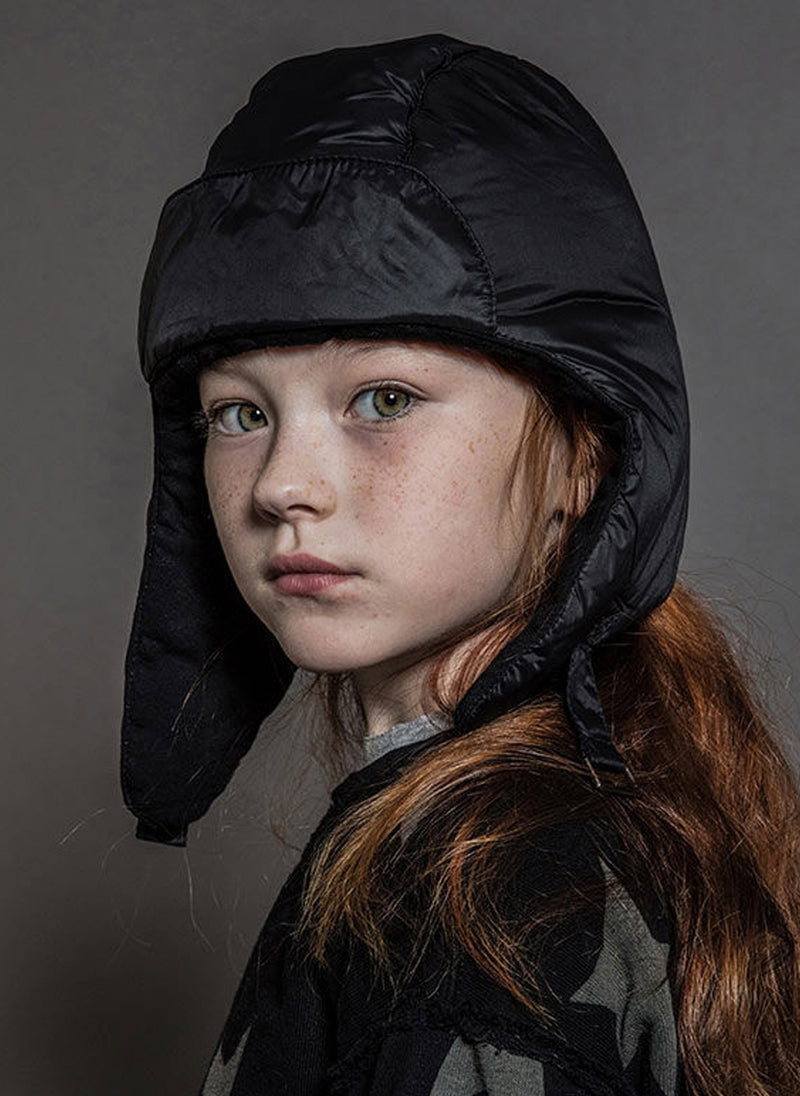 Like Snoopy & Amelia Earhart, boys & girls can rock an aviator hat & get that classic cool vibe with zero effort. this down hat comes in black in a nylon sheen with cozy cotton innards. feels good against the face when you strap it on under the chin. Great for sled-riding or just jumping in the car to go the store with mom.Â