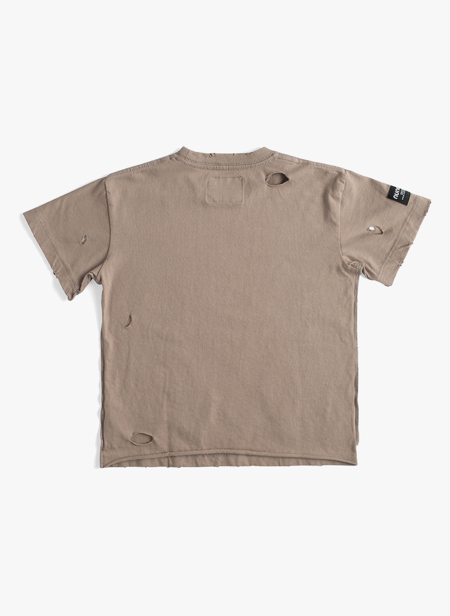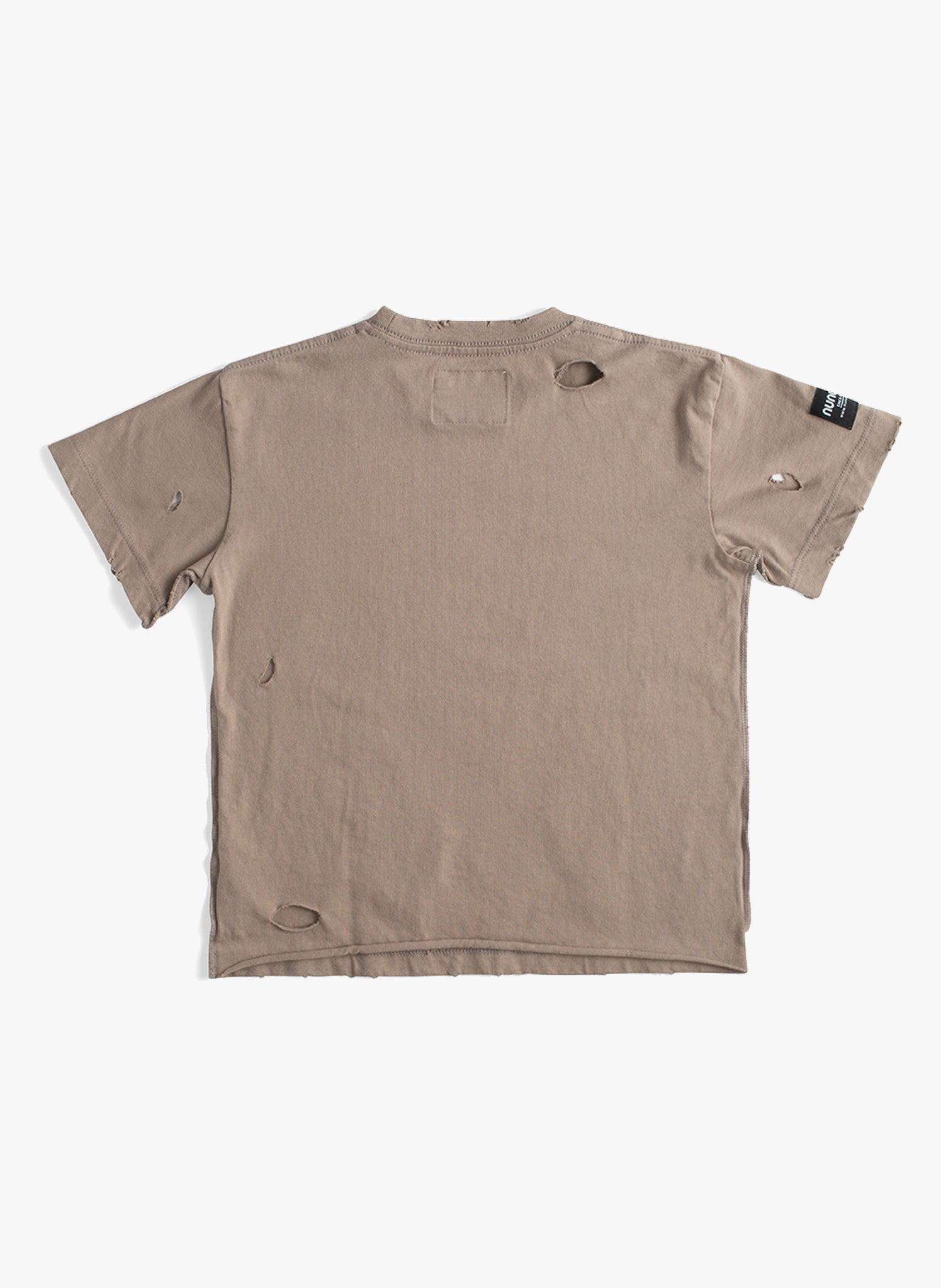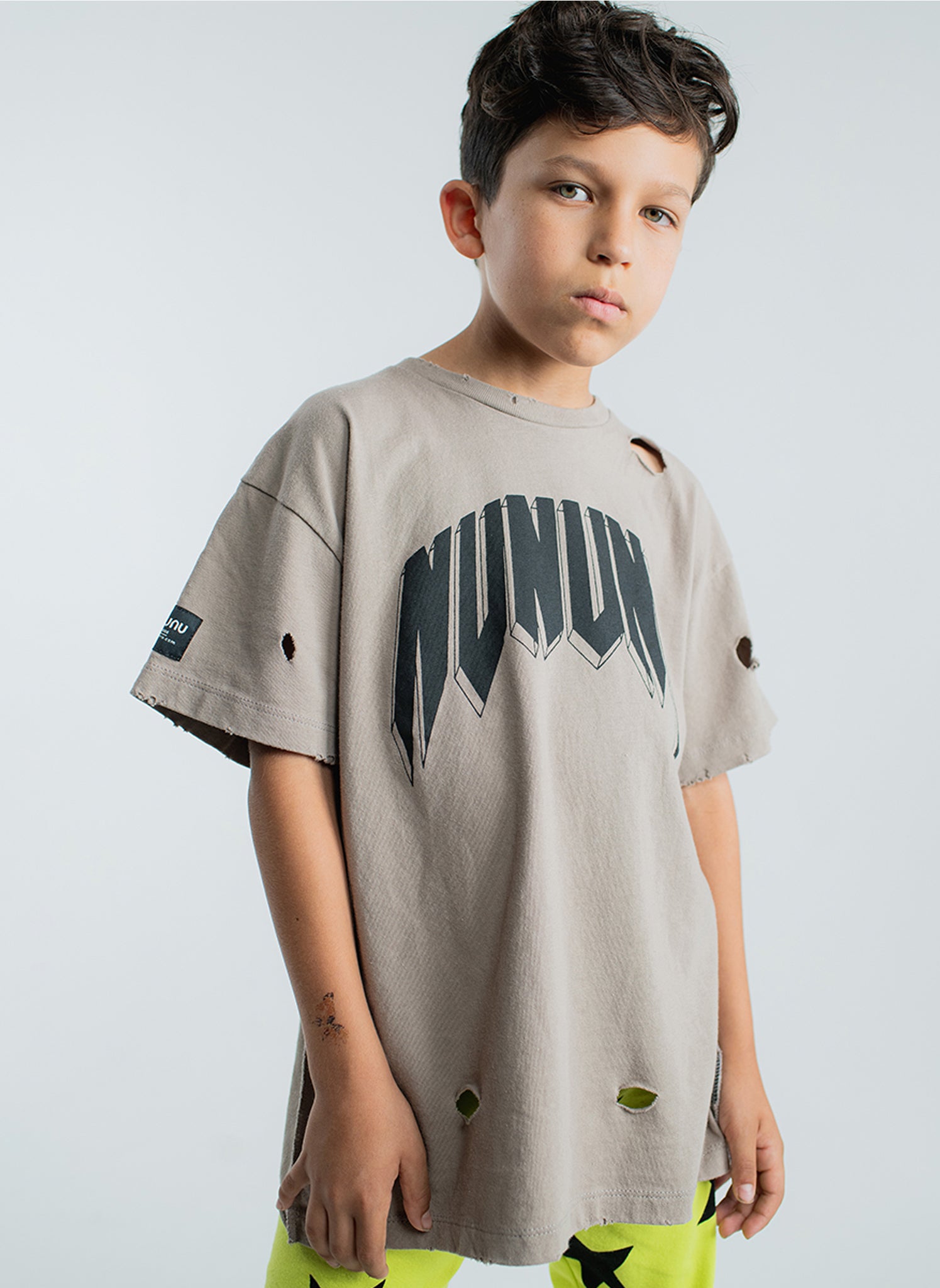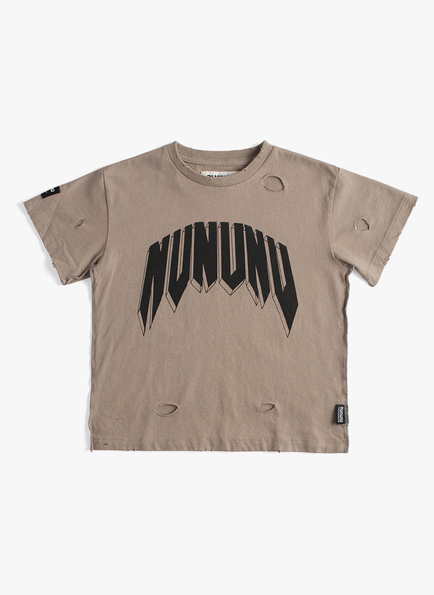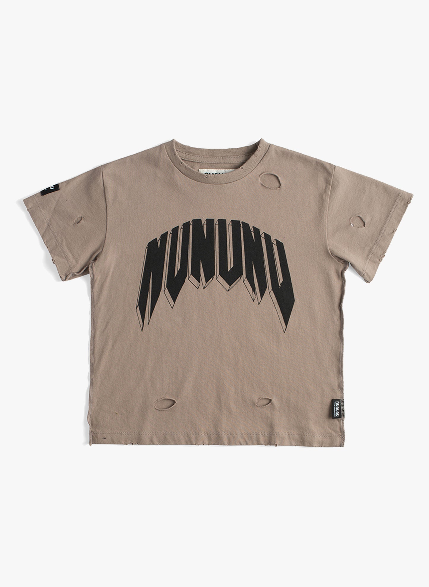 Nununu's new logo design is so “rawk” it hurts. throw up some metal & get black to the days of real music with this angular, 3d design placed in an arc on your chest like the album cover of the best band ever. the graphite shirt itself is totally rough & ready, complete with distressed edges & custom holes placed artfully to signify untold adventures. oh, and it’s soft as hell.