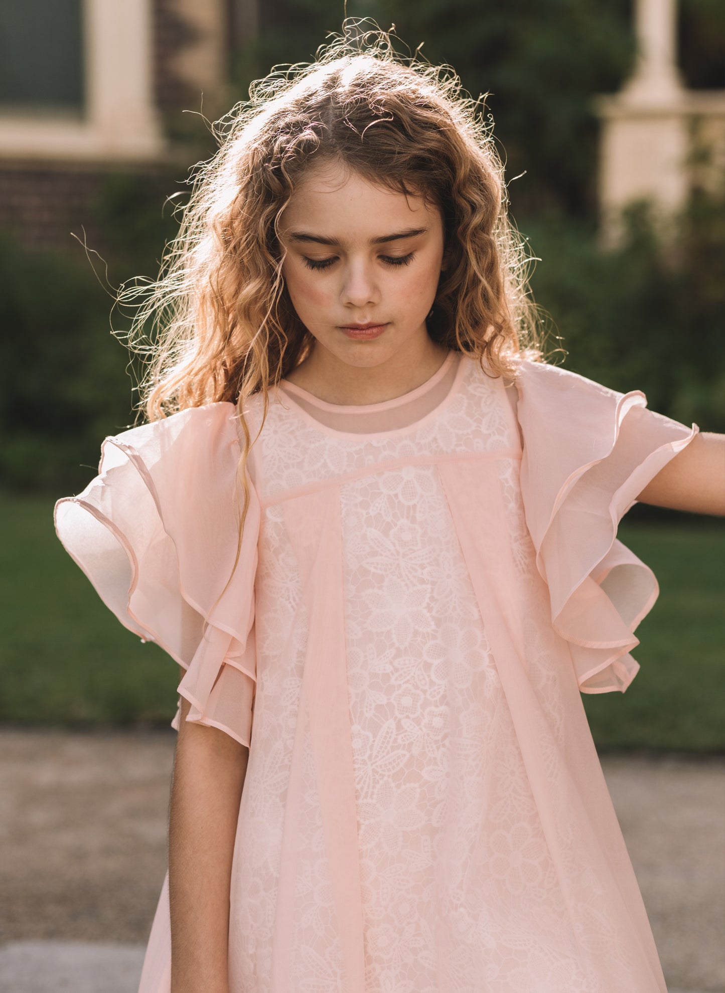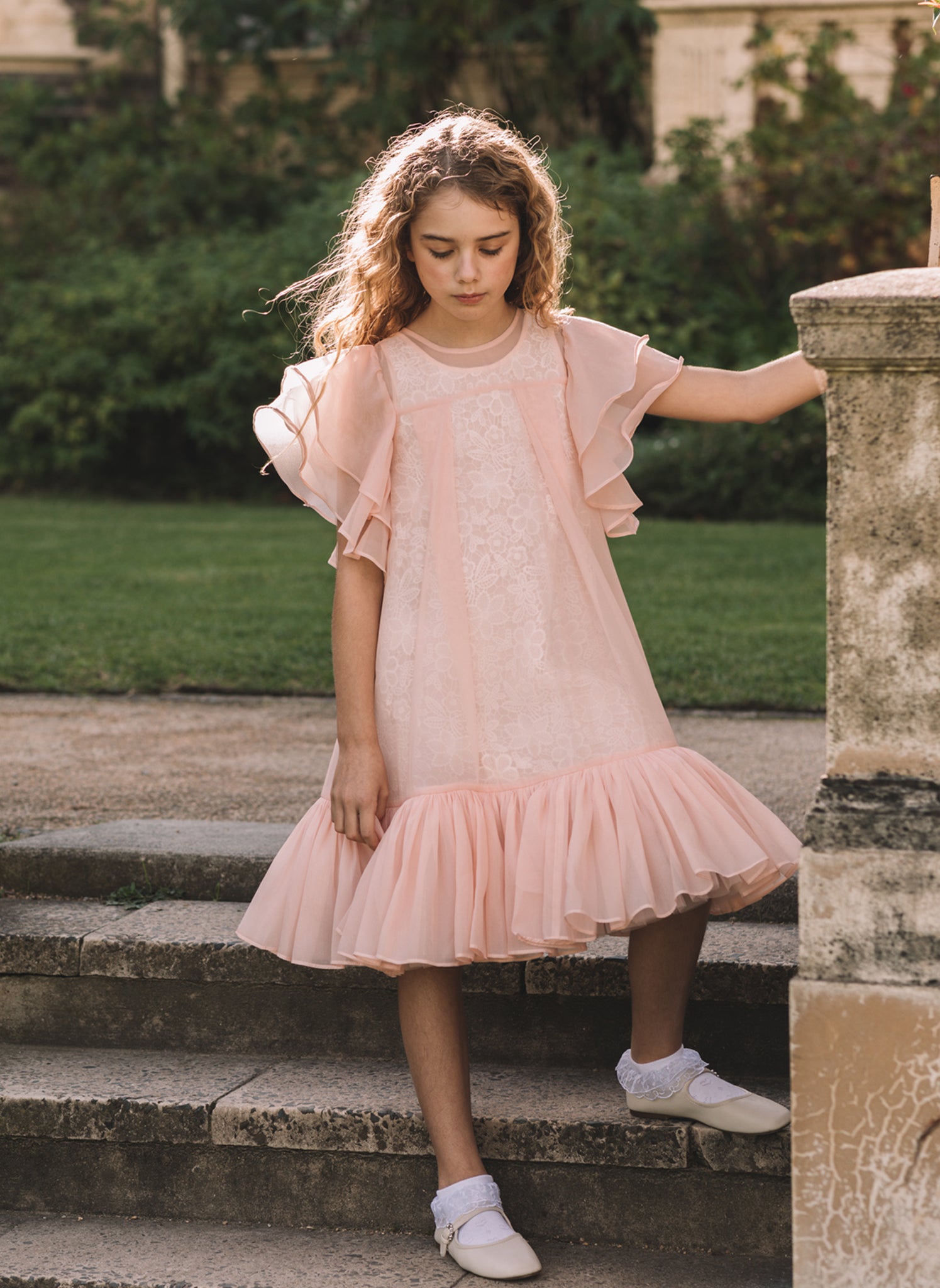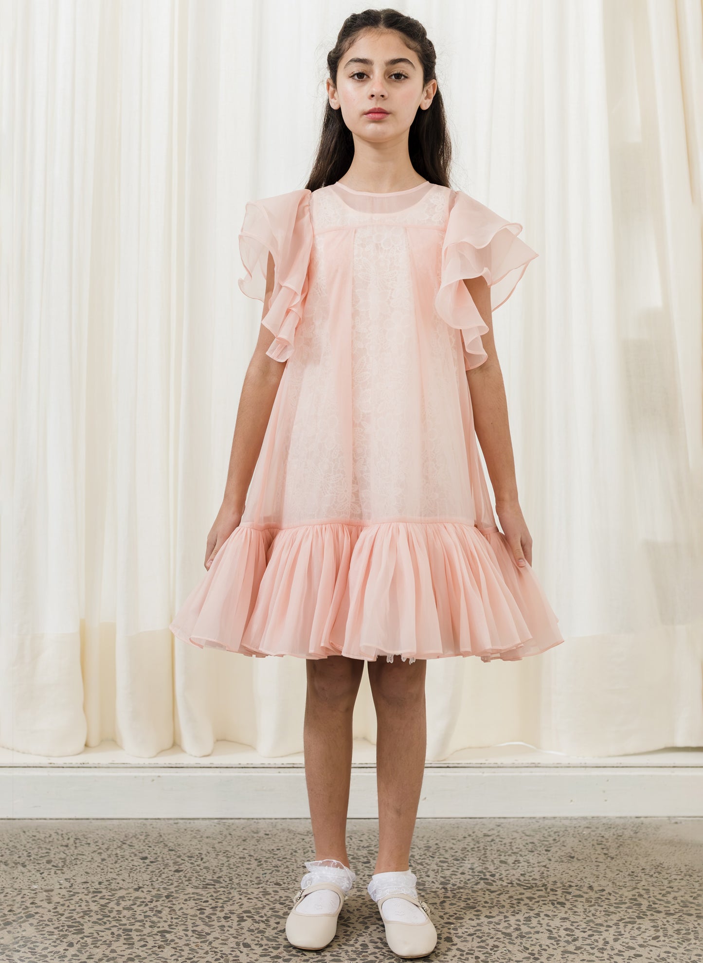 Petite Amalie Organza Overlay Dress with Lace Slip