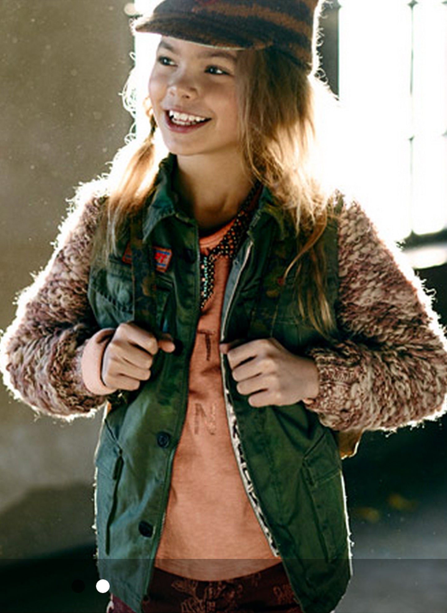 Command attention in this army jacket with contrast knitted sleeves and team it with a statement backpack and knitted hat.