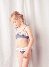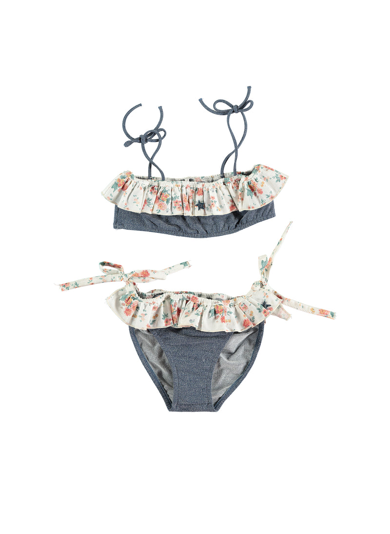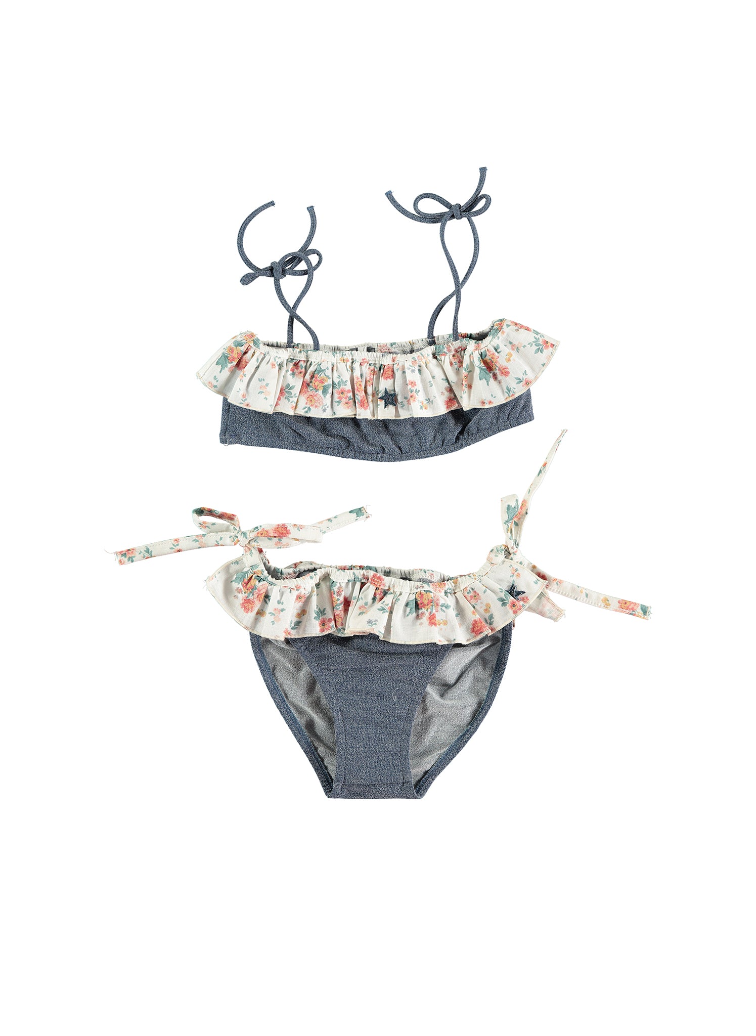 tocoto vintage Denim Bikini Set with Flower Flounces in Blue