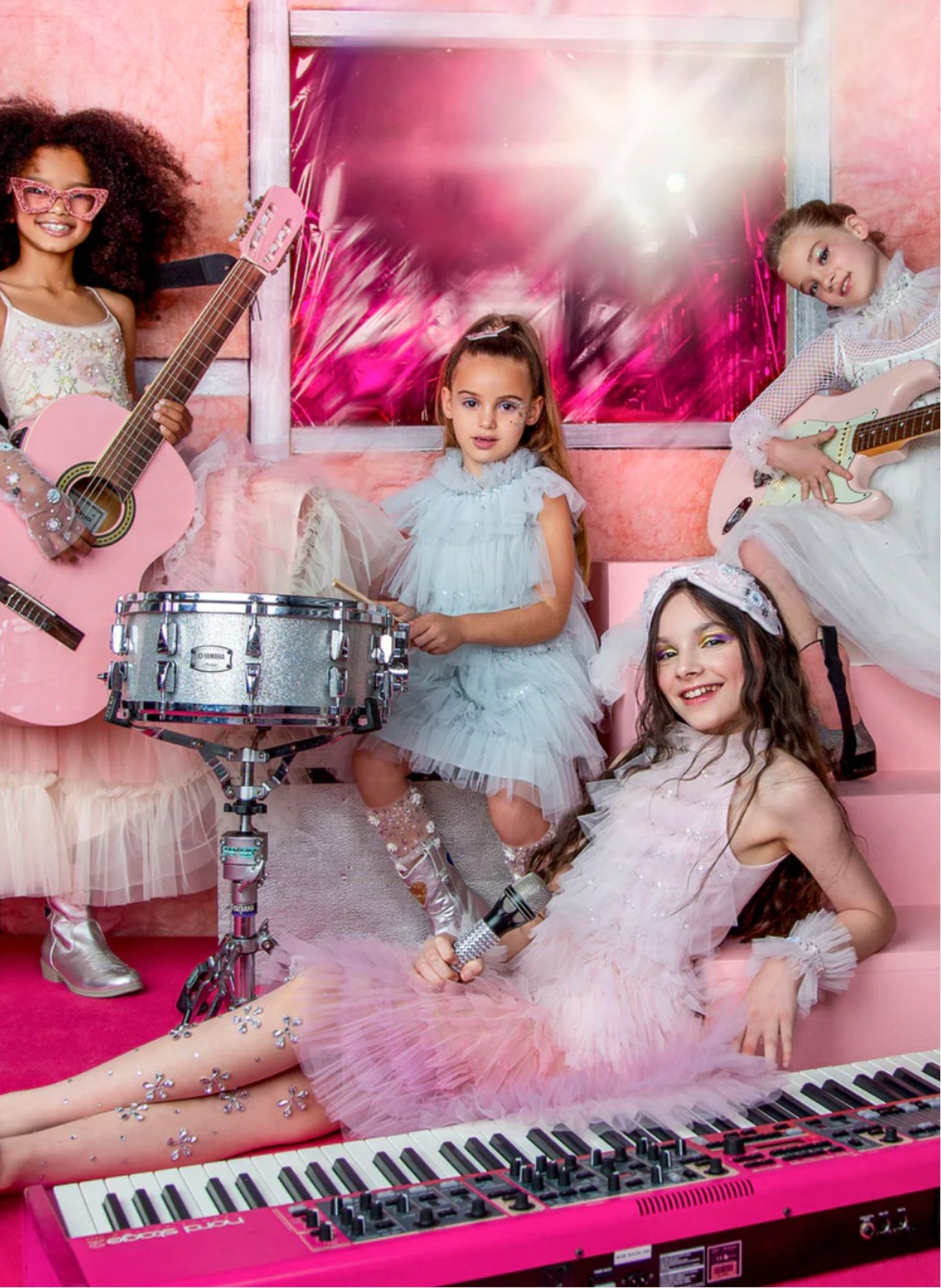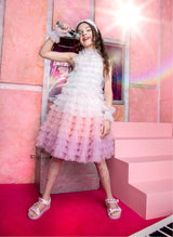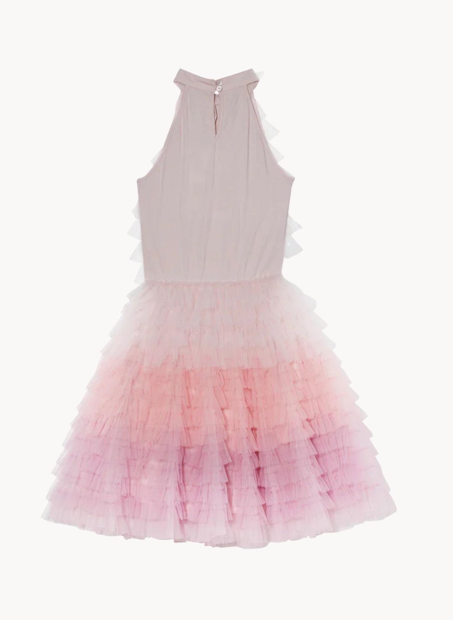 Your bold boho babe will be dressed to impress in the luxe Pixie Tutu Dress. This beautiful statement piece features a tank-style halter bodice formed of rebellious ruffles and trimmed with sparkling sequins for added shimmer and shine. The generously layered tulle skirt in graduated shades of Porcelain Pink Mix falls in vampish ruffles to create a high-volume silhouette as it tumbles from the deceptively comfortable elasticated waist.