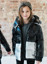 Vierra Rose Chelsea Color Block Puffer in Black/Silver